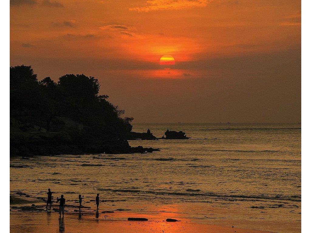 Jižní Bali – Jimbaran Bay, písečná pláž, západy slunce, rybí tržnice a restaurace na pláži. Snadná dostupnost Uluwatu, GWK Cultural Park či surfových pláží Bukitu.
