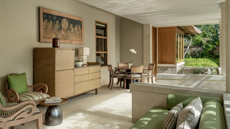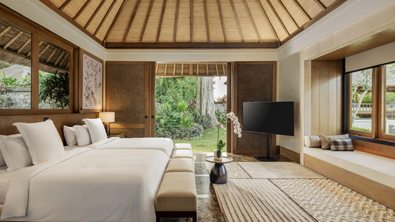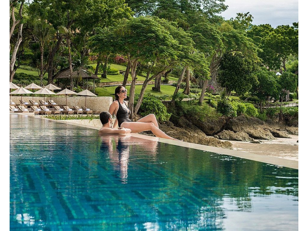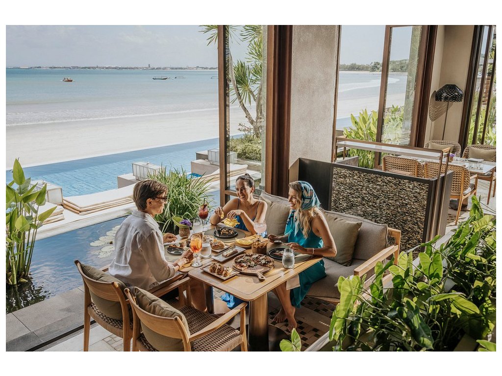 Plážový luxus se soukromím vil a nekompromisním servisem. Silné wellness & spa, rafinovaná gastronomie (Sundara, Taman Wantilan) a výborné rodinné zázemí (Jimba Kids Club). Atmosféra je spíše klidná a elegantní, s důrazem na detail a pohodu u oceánu. Vynikající volba pro honeymoon, výjimečné oslavy i nenápadný high-end pobyt.
