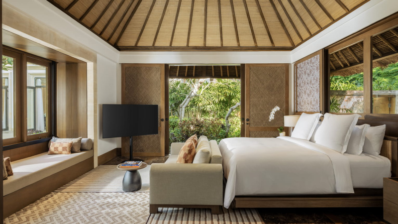 Four Seasons Jimbaran Bay je špičková plážová volba s velkorysými vilami a detailním servisem. Oproti vnitrozemským retreatům nabízí písečnou pláž a beachfront atmosféru; proti velkým rezortům vyniká intimitou all-villa konceptu a high-end gastronomií.