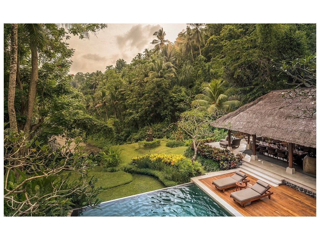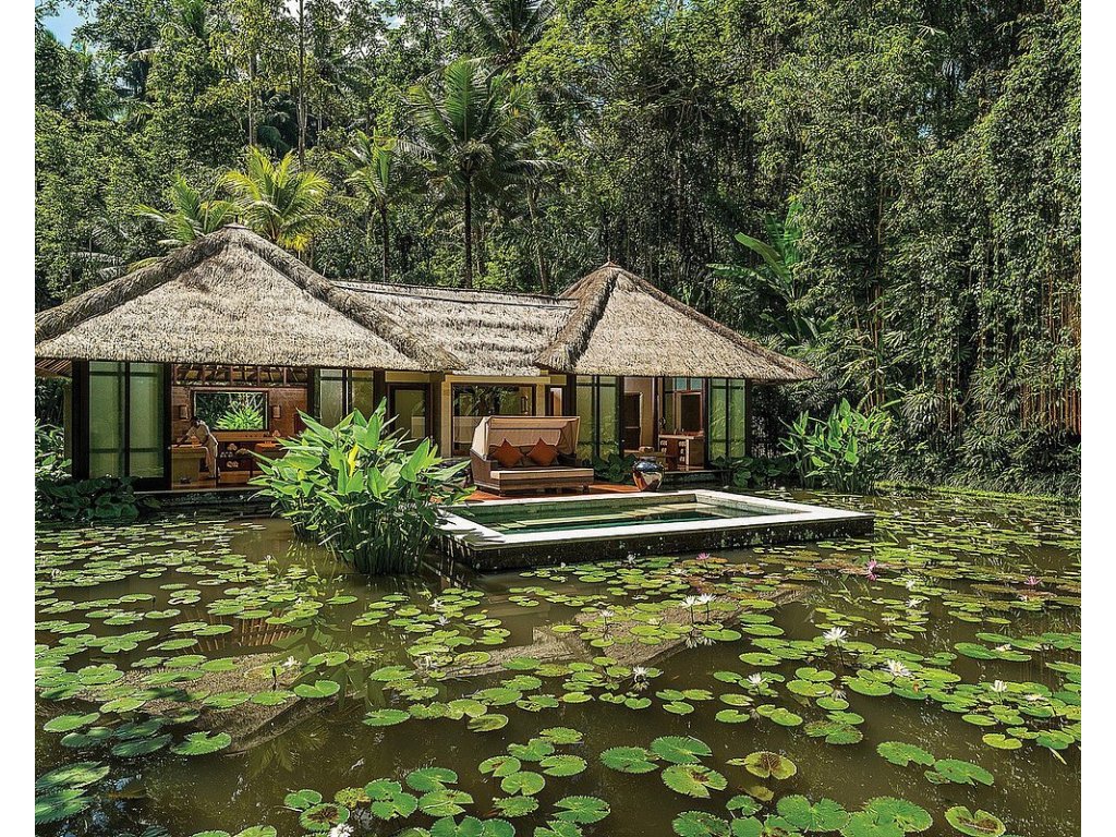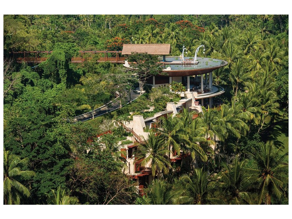Legendární pětihvězdičkový resort nad údolím řeky Ayung v Ubudu. Architektura zasazená do rýžových teras a džungle, špičkové vily se soukromými bazény a klidná, rozjímavá atmosféra. Ideální pro páry, náročné cestovatele i rodiny, kteří chtějí být v srdci přírody a přitom v krátkém dojezdu od atrakcí Ubudu.