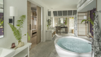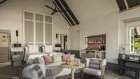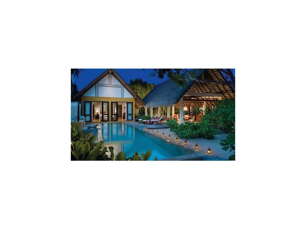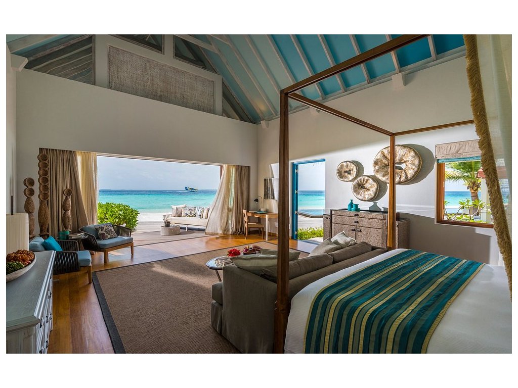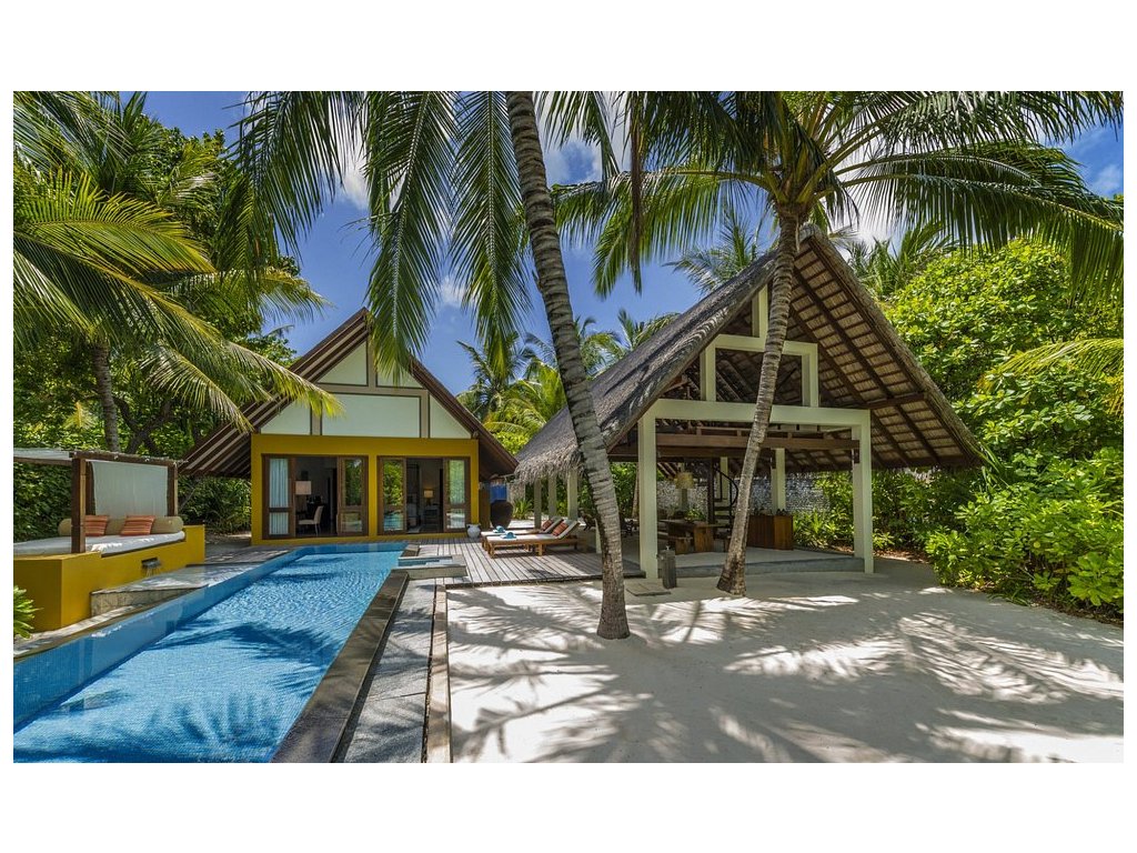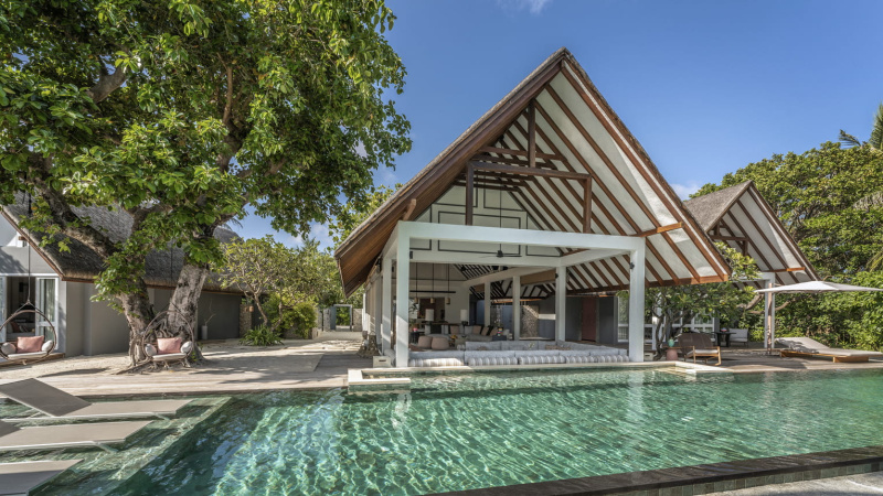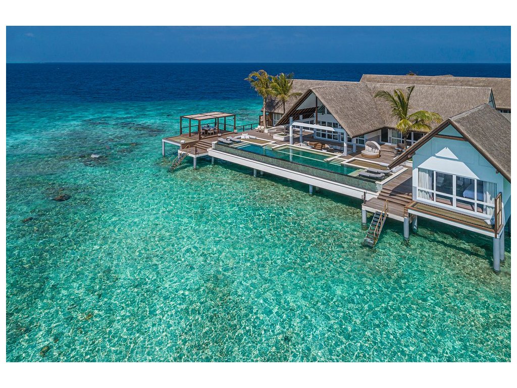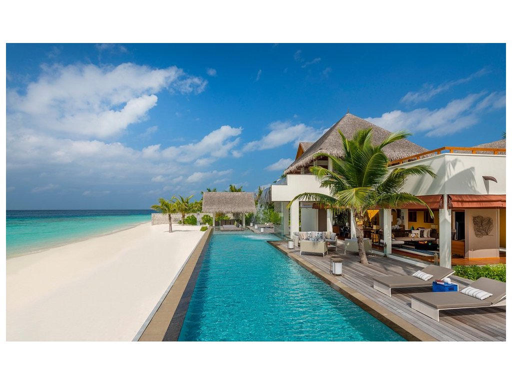Vlajková loď resortu. Čtyřpokojové privátní sídlo s několika bazény, pláží, obývacími prostory, kuchyní, personálem a vlastním wellness. Pro VIP klientelu.