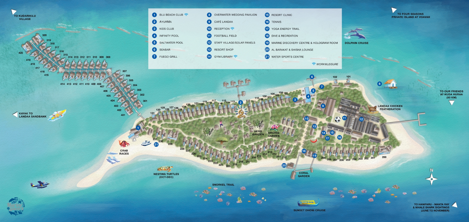 - Vlastní marina, centrum mořské biologie, Ayurveda pavilon