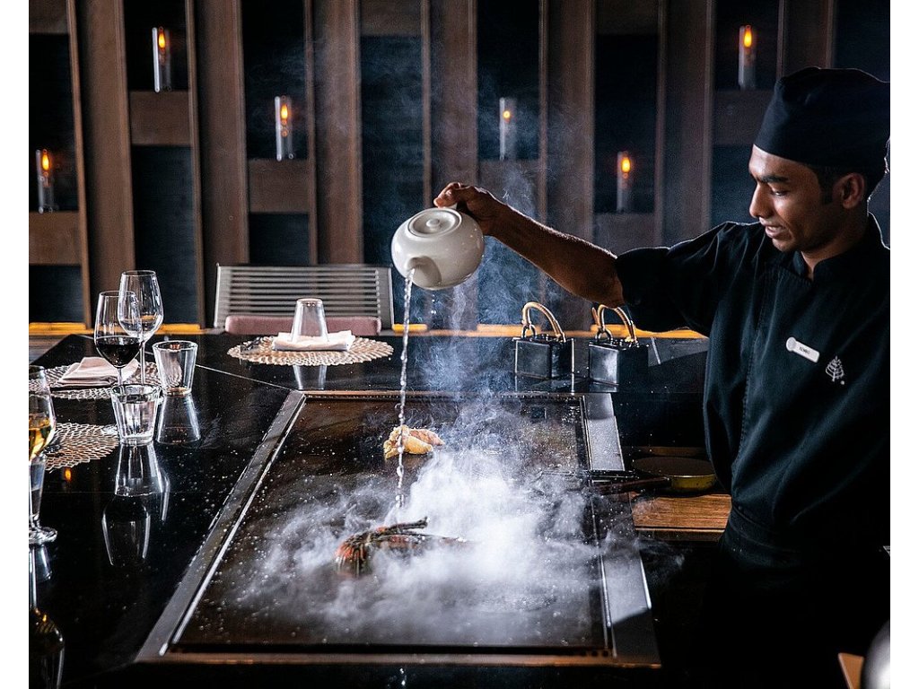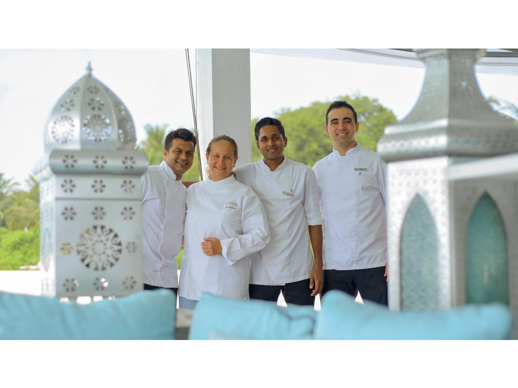 Resort nabízí 4 hlavní restaurace – asijská (Café Landaa), italská (Blu), indická (Al Barakat), grill (Fuego Grill). Dále vinný sklep, bar u bazénu a možnost privátního stolování.