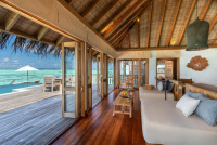 Cca 210 m², nadvodní vila umístěná blízko hlavního ostrova s výhledem na lagunu. Prostorná terasa, ložnice, otevřený obývací prostor, střešní terasa a venkovní koupelna. Přímý vstup do vody a služby osobního komorníka. Ideální pro páry, které chtějí kombinaci soukromí a blízkosti resortních služeb.