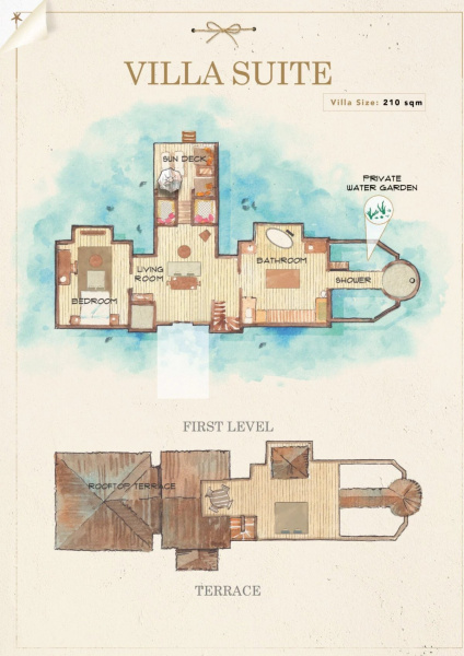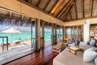 Cca 210 m², nadvodní vila umístěná blízko hlavního ostrova s výhledem na lagunu. Prostorná terasa, ložnice, otevřený obývací prostor, střešní terasa a venkovní koupelna. Přímý vstup do vody a služby osobního komorníka. Ideální pro páry, které chtějí kombinaci soukromí a blízkosti resortních služeb.