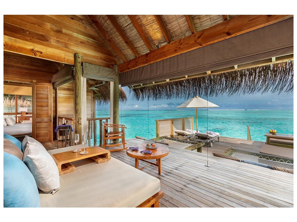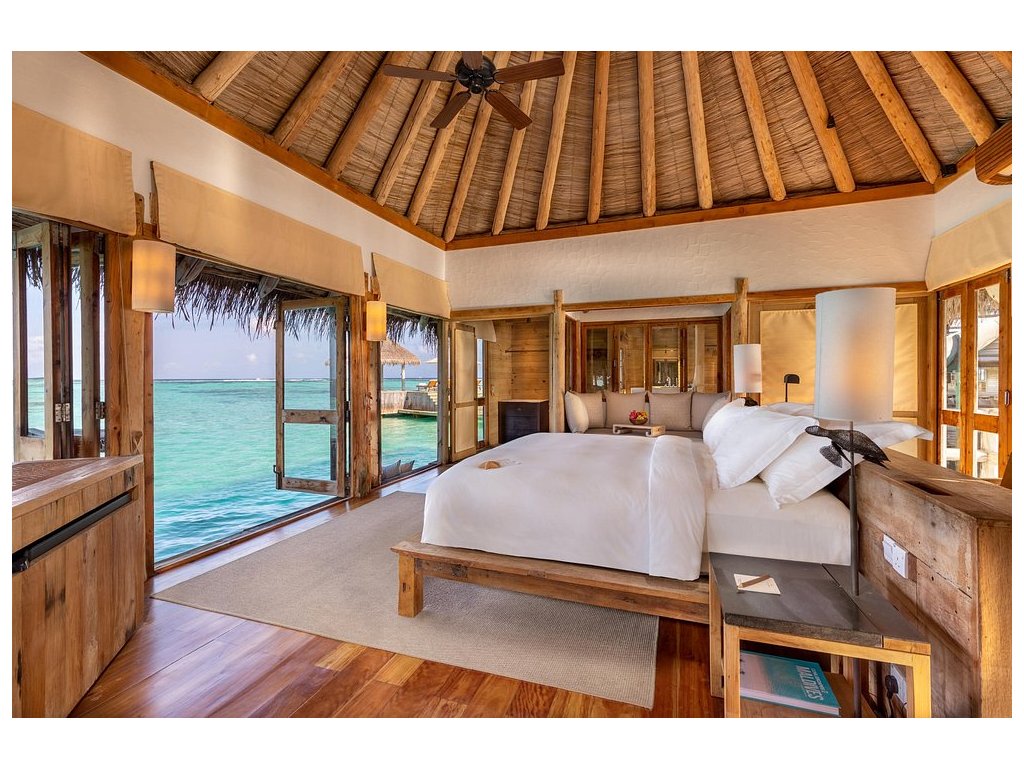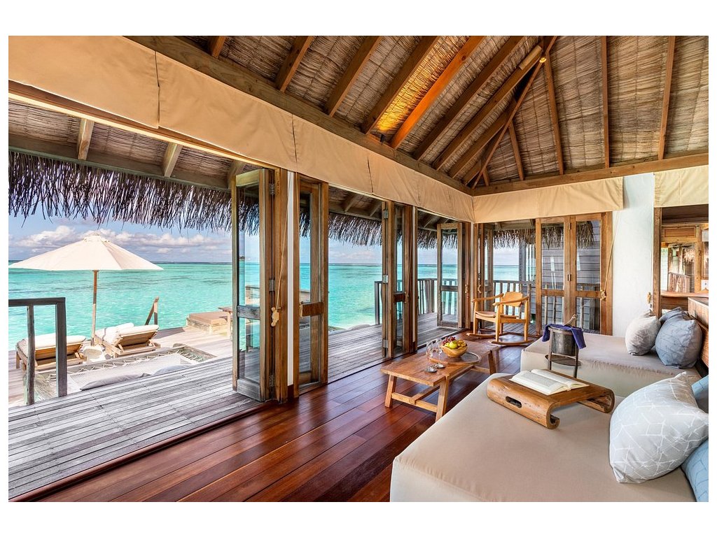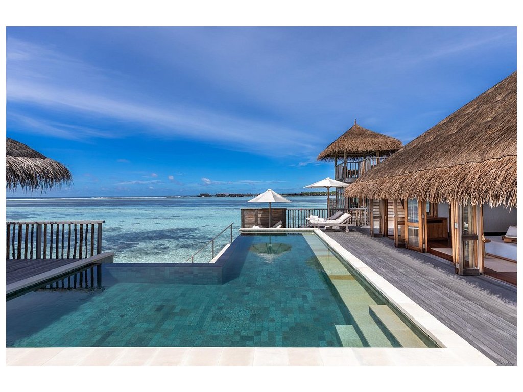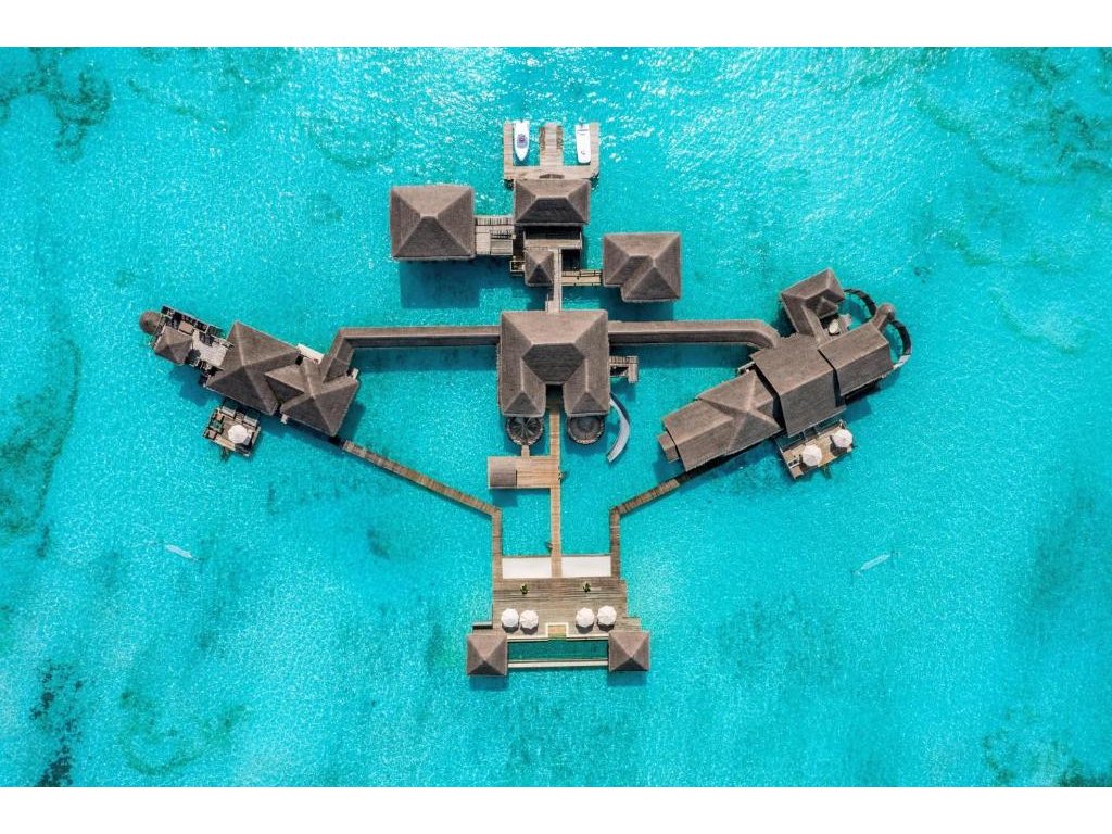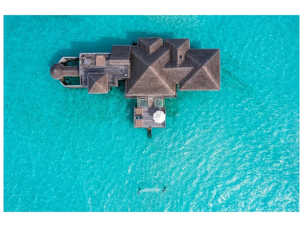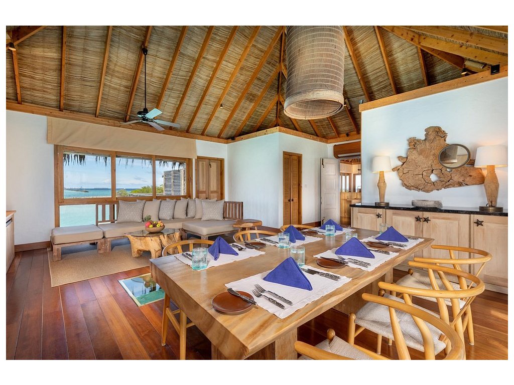 Cca 1 700 m², největší nadvodní vila na světě, stojící samostatně v laguně, přístupná pouze lodí. Nabízí čtyři ložnice, několik obývacích prostor, vlastní wellness, saunu, posilovnu, kino, obrovský bazén, skluzavku do moře a sluneční terasy. Součástí jsou služby osobního komorníka, kuchaře a privátní lodě. Ideální pro rodiny, skupiny nebo VIP klientelu hledající maximální luxus, prostor a absolutní soukromí.