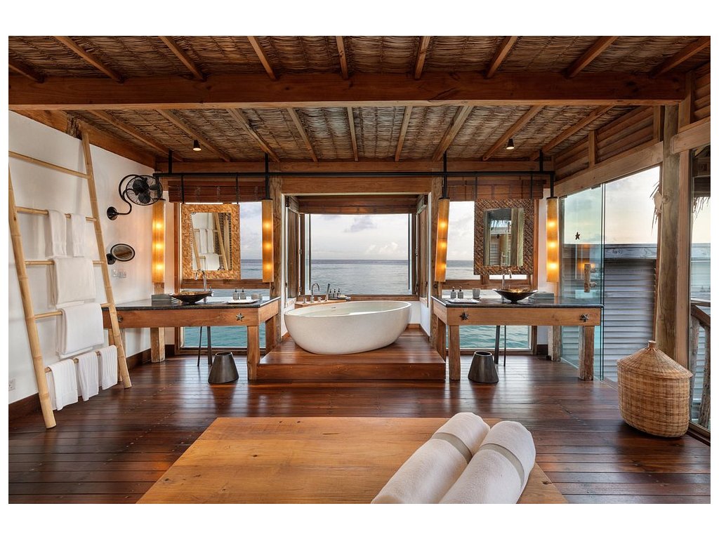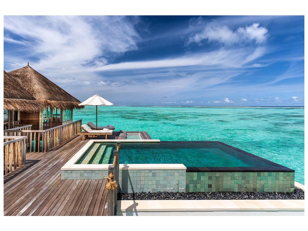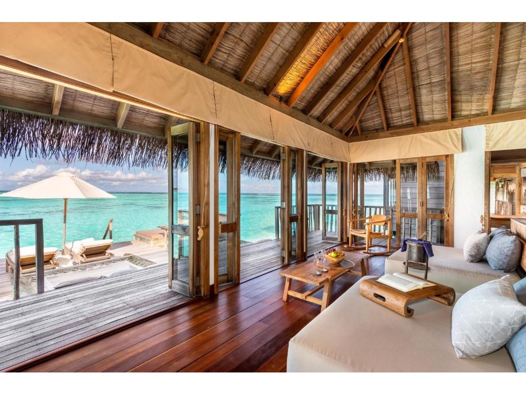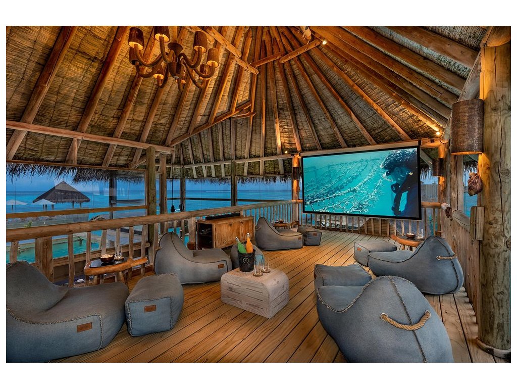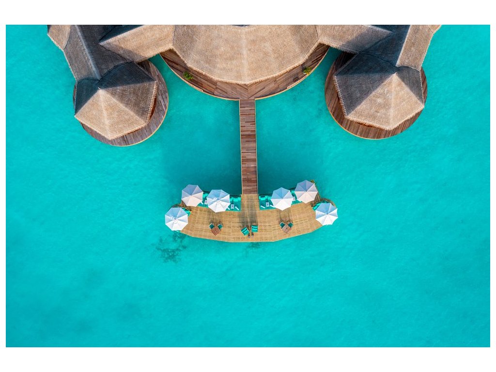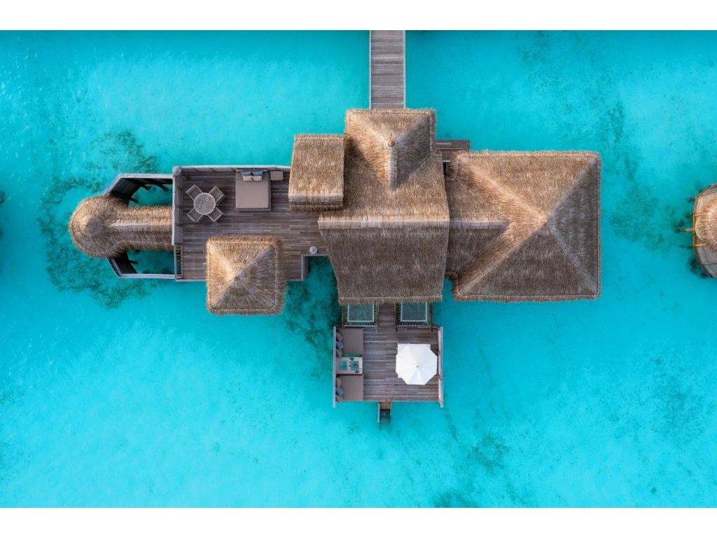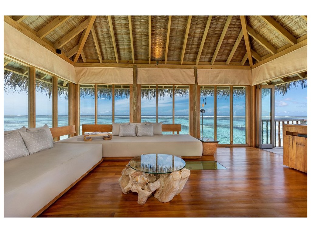 Cca 1 700 m², největší nadvodní vila na světě, stojící samostatně v laguně, přístupná pouze lodí. Nabízí čtyři ložnice, několik obývacích prostor, vlastní wellness, saunu, posilovnu, kino, obrovský bazén, skluzavku do moře a sluneční terasy. Součástí jsou služby osobního komorníka, kuchaře a privátní lodě. Ideální pro rodiny, skupiny nebo VIP klientelu hledající maximální luxus, prostor a absolutní soukromí.