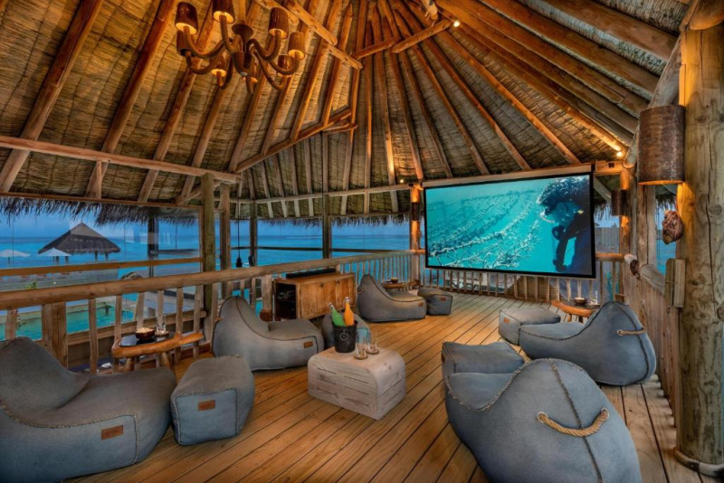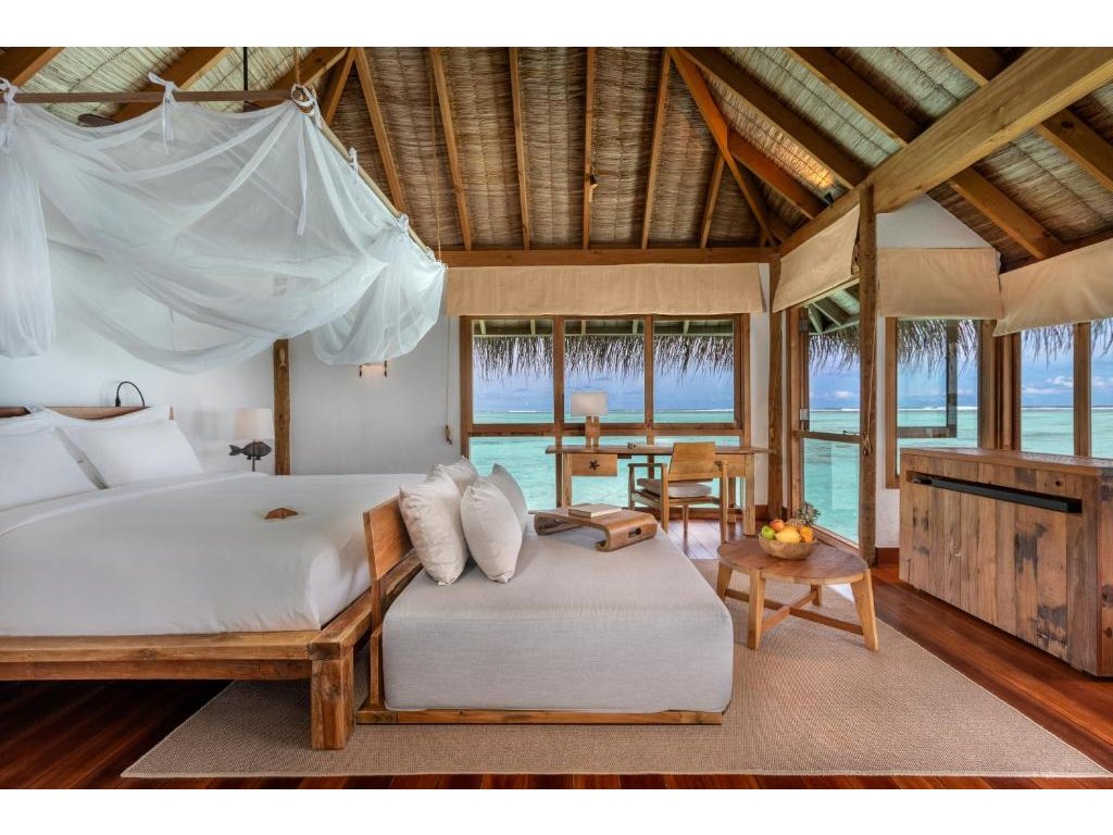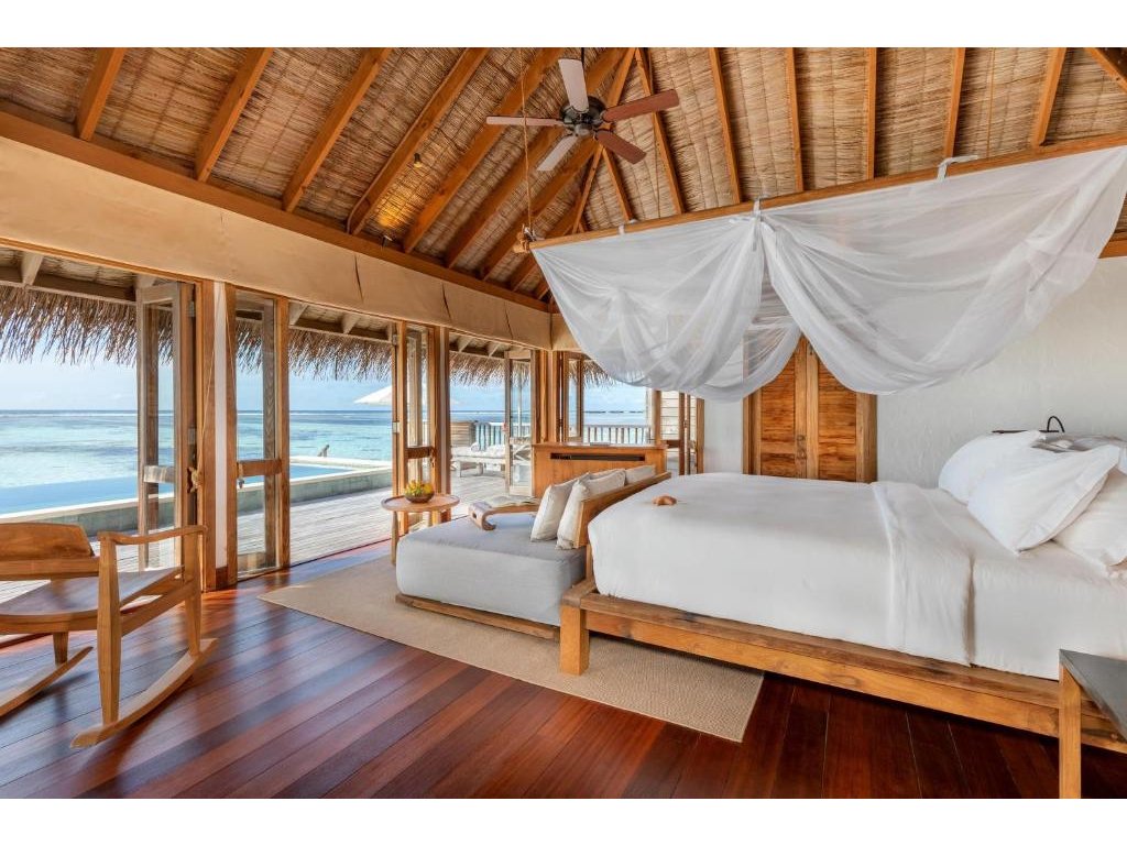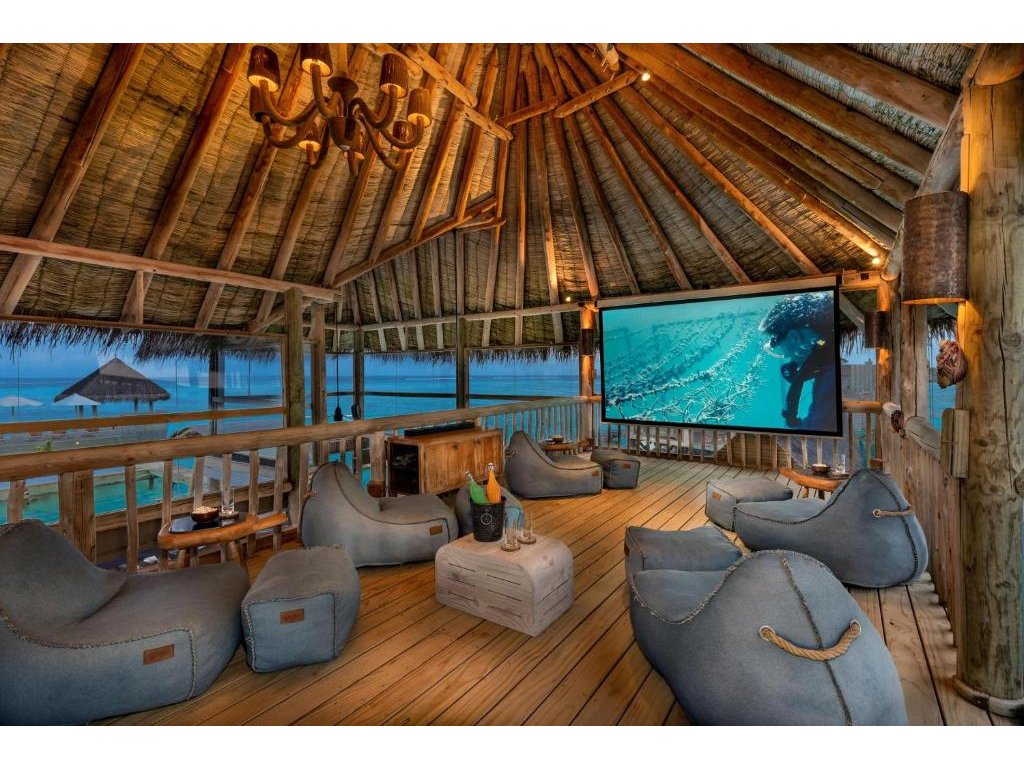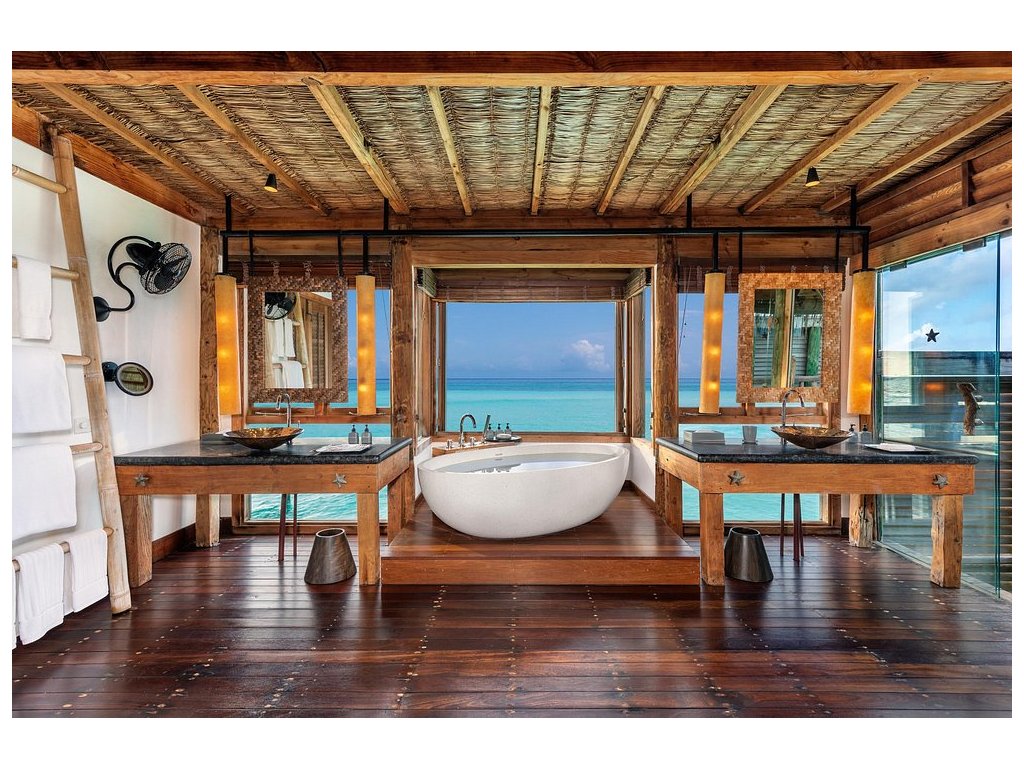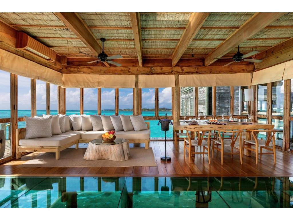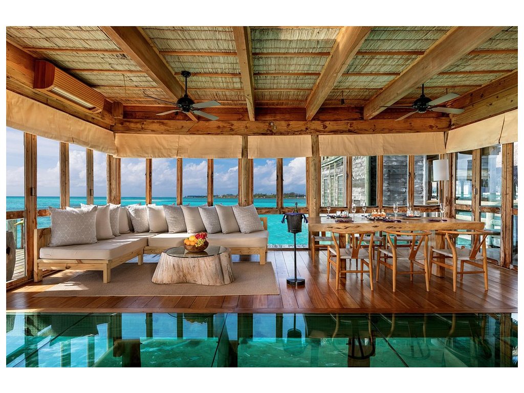Cca 1 700 m², největší nadvodní vila na světě, stojící samostatně v laguně, přístupná pouze lodí. Nabízí čtyři ložnice, několik obývacích prostor, vlastní wellness, saunu, posilovnu, kino, obrovský bazén, skluzavku do moře a sluneční terasy. Součástí jsou služby osobního komorníka, kuchaře a privátní lodě. Ideální pro rodiny, skupiny nebo VIP klientelu hledající maximální luxus, prostor a absolutní soukromí.