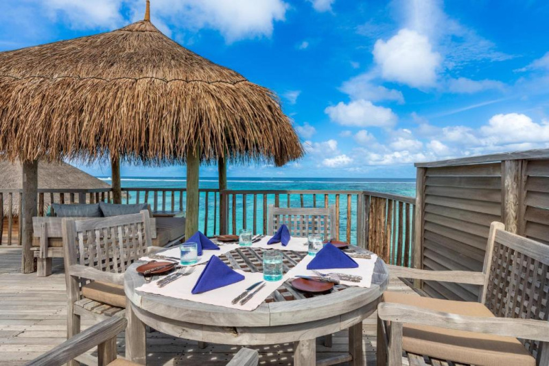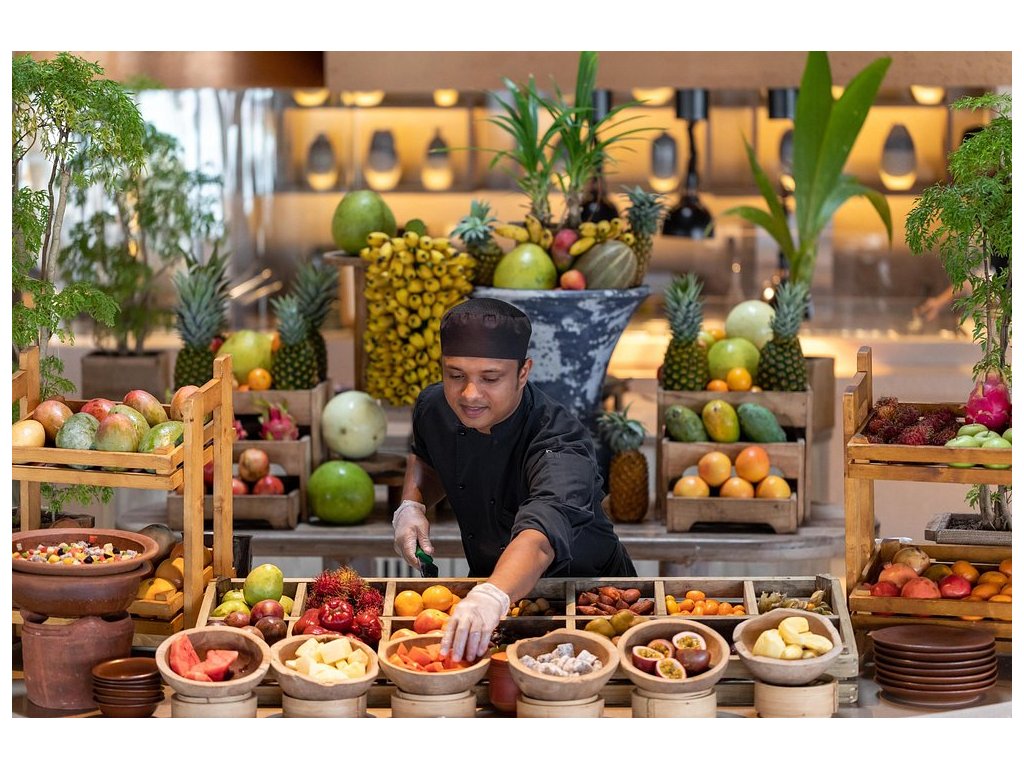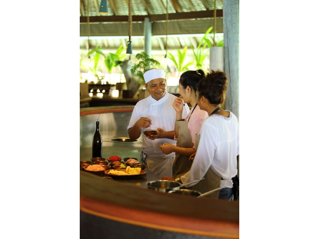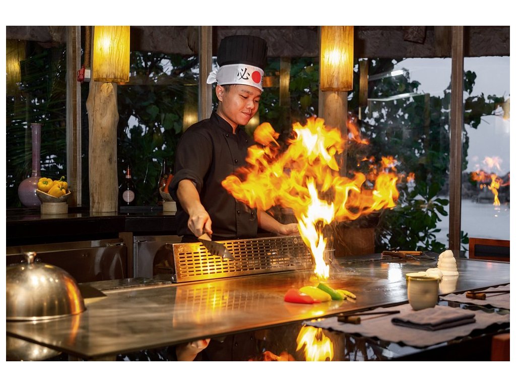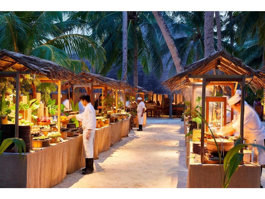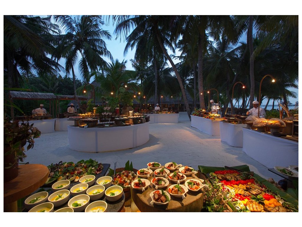 Resort nabízí několik prémiových restaurací – mezinárodní, asijská, fusion, bio zahrada. Možnost romantického stravování na pláži, privátní BBQ, vinný sklep.
