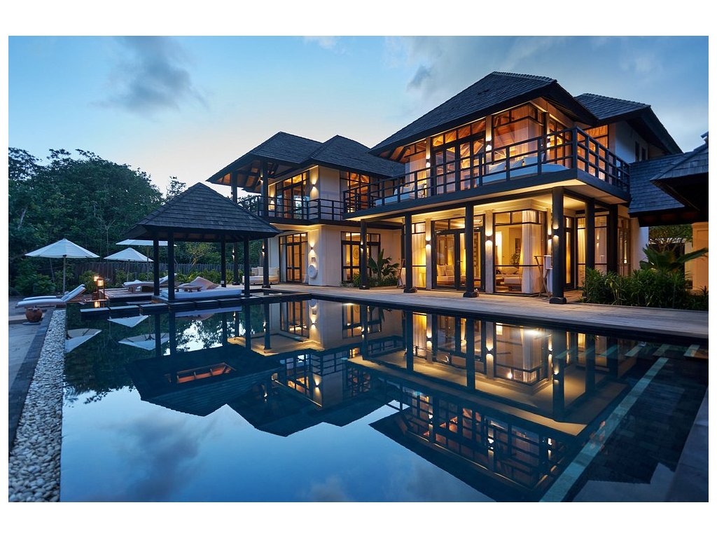 400 m², dvě ložnice, dva bazény, soukromá zahrada, přímo u pláže, ideální pro rodiny.