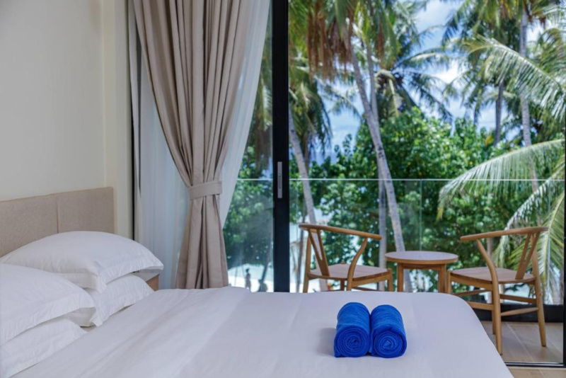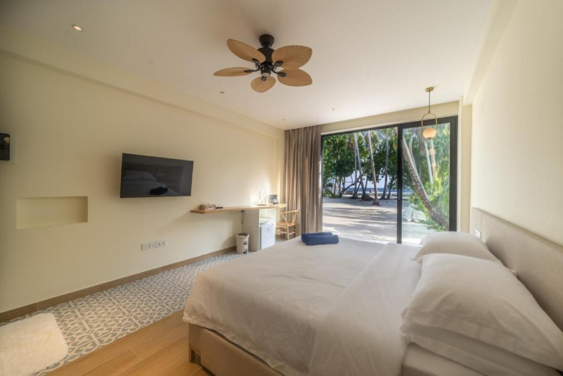 Moderní butikový guesthouse na klidném ostrově Fulidhoo (Vaavu atol), pár kroků od bikini pláže. Nové, čisté pokoje, milý personál a výborná lokace přímo u moře. Ideální základna pro páry i přátele, kteří chtějí hezkou pláž, šnorchl a lokální atmosféru.