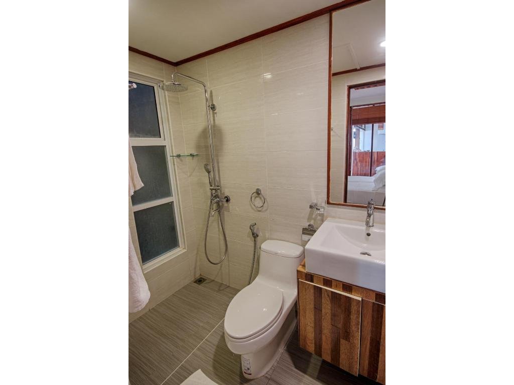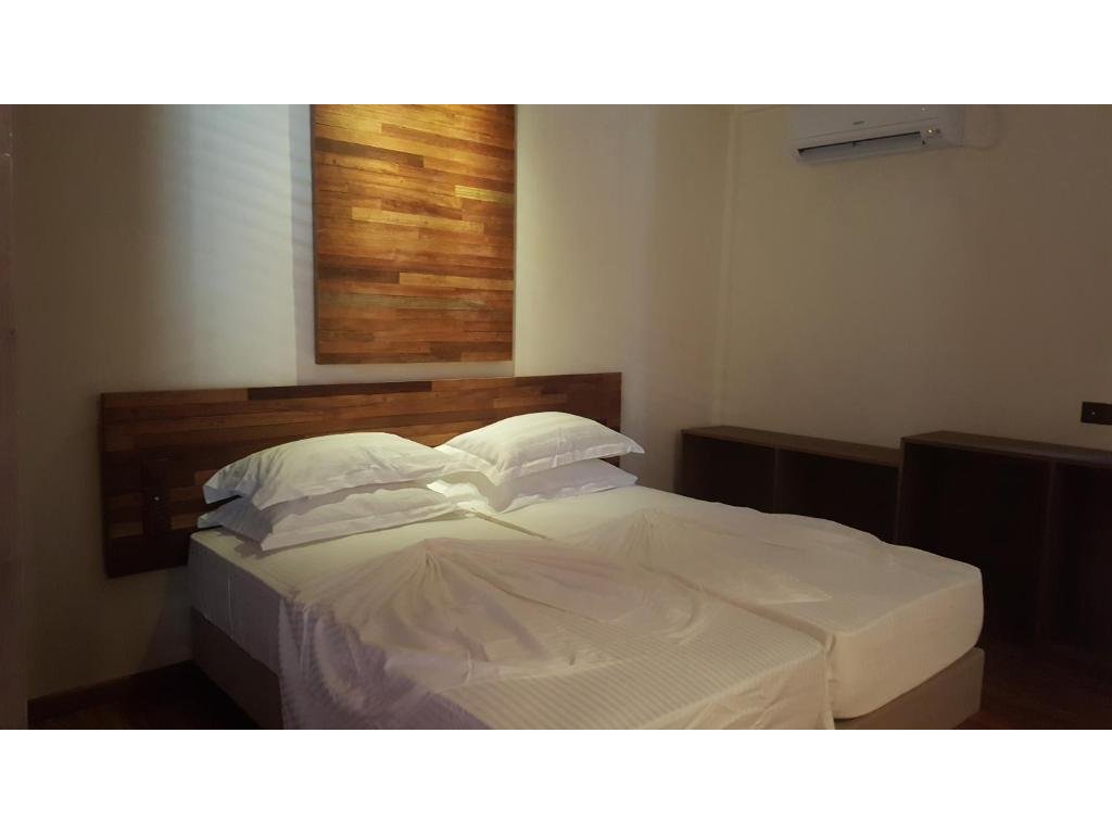 Útulný, jednoduchý dvoulůžkový pokoj se soukromou koupelnou a klimatizací; ideální jako jednoduchá a čistá základna na Fulidhoo.