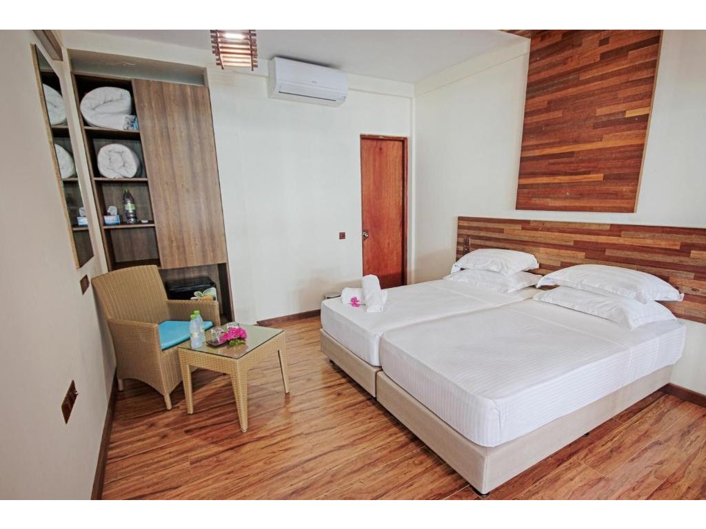 Skvělé value for money pro páry i kamarády, kteří chtějí komorní atmosféru, pěknou pláž a výlety bez resortových cenovek. Pokoje jsou jednoduché, moderní a čisté. Lokalita Fulidhoo je klidná, s možností výletů (manty sezónně, šnorchlování atd.).
