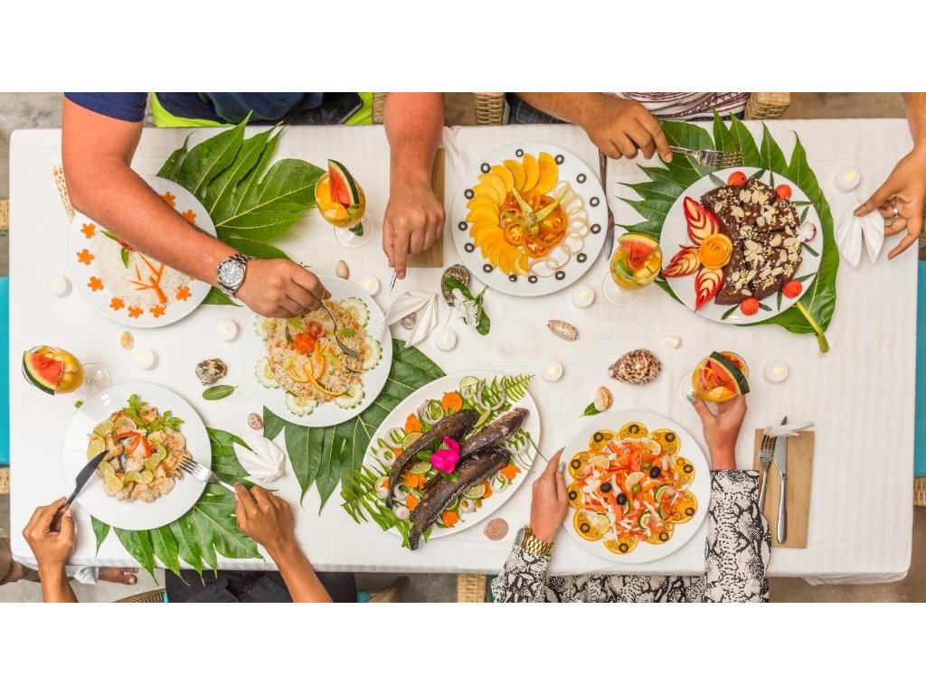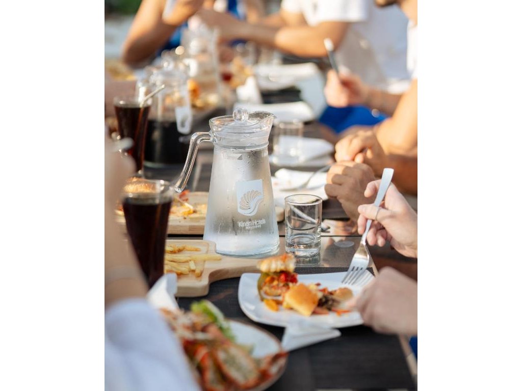 Kinan Retreat Restaurant – hotelová restaurace s maledivskou i mezinárodní kuchyní; snídaně typicky formou jednoduchého bufetu/á la carte, k večeři čerstvé ryby a grilované speciality (tematické BBQ dle obsazenosti).