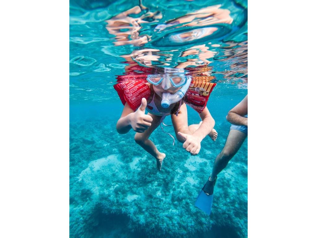 - Šnorchlování z pláže/na výletech, rybaření, výlety na písečné kosy (sandbanky), dle sezóny manty.