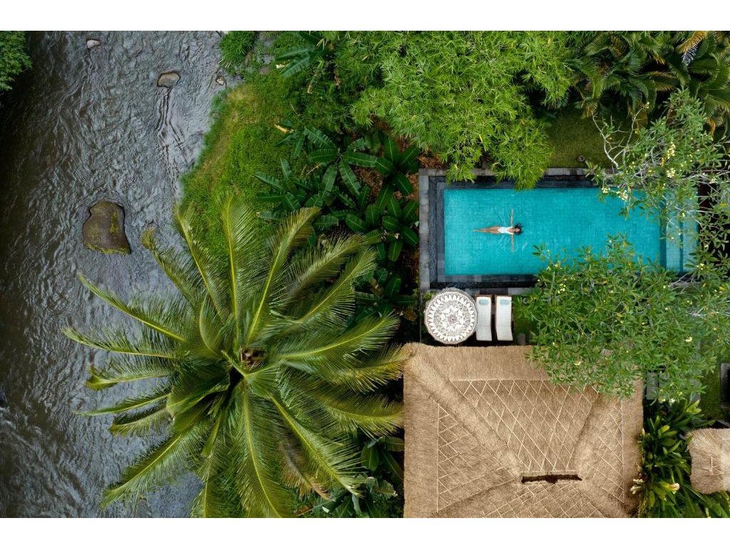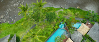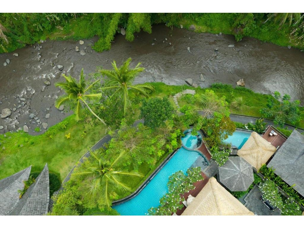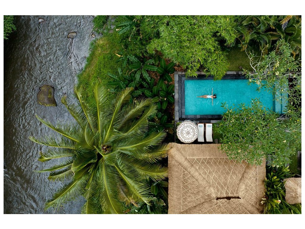 cca 430 m² | Jednoložnicová vila přímo u řeky Ayung s privátním bazénem ~30 m², dřevěnou terasou a uklidňujícím šumem vody.