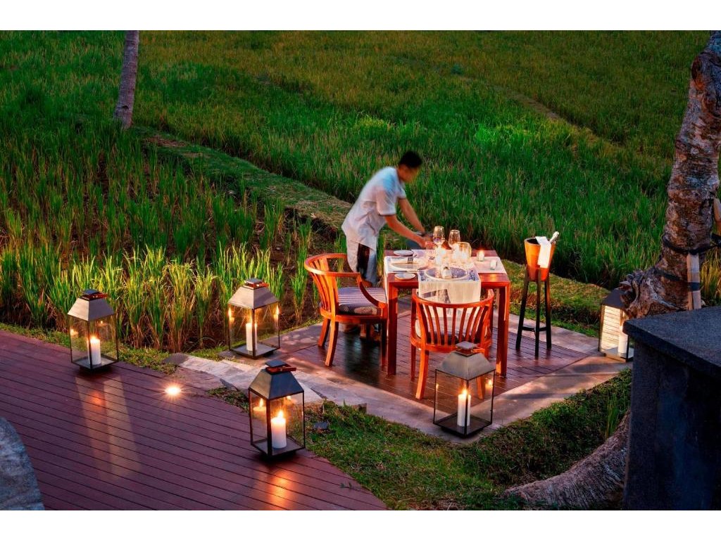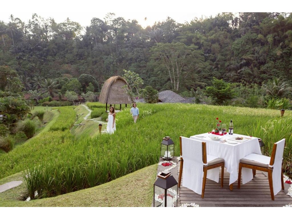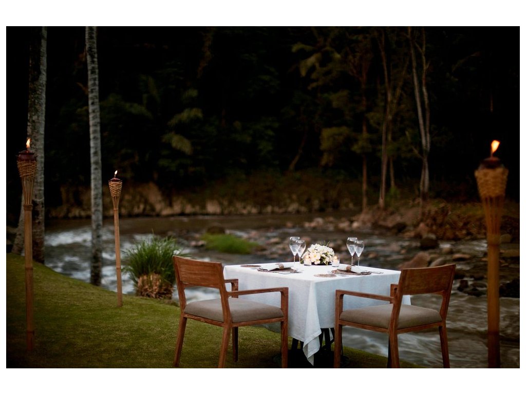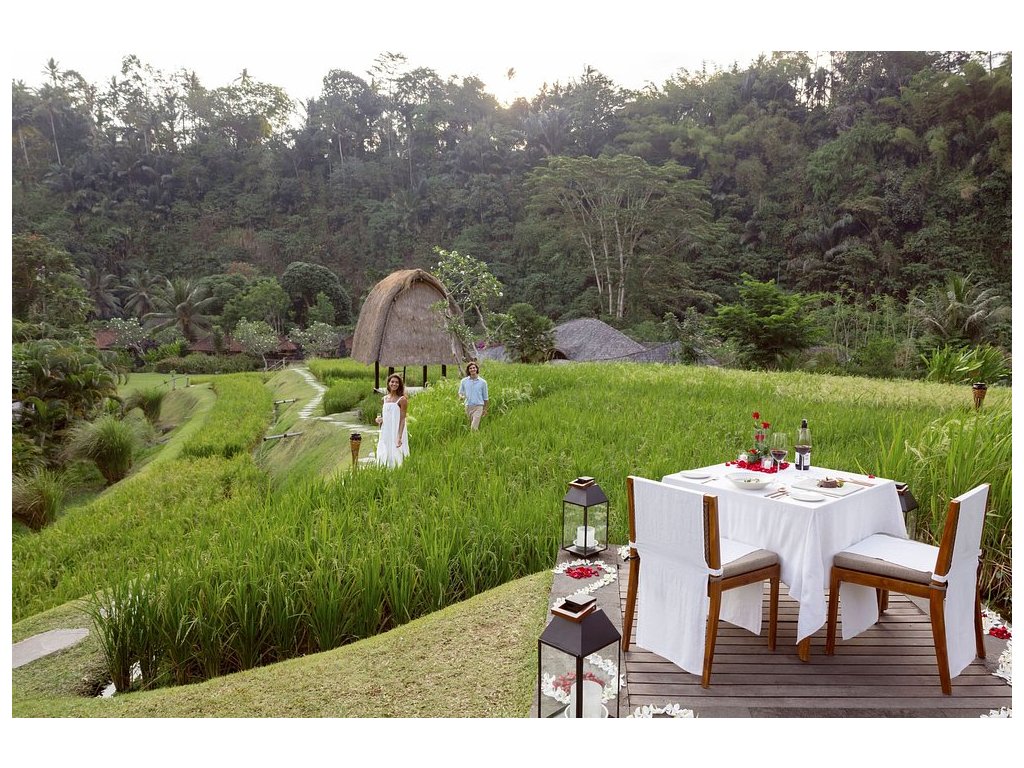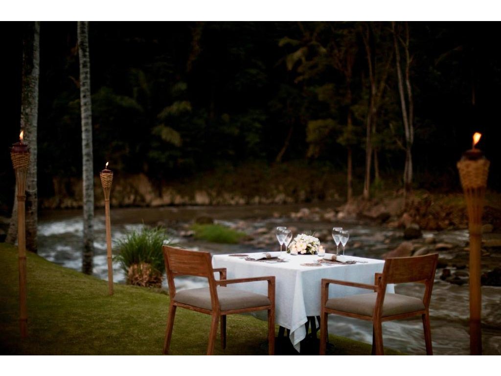 Absolutní soukromí vil u řeky, rituální lázně a večerní spa, privátní večeře v rýžovém poli či na terase – perfektní pro honeymoon, žádosti o ruku a intimní oslavy.