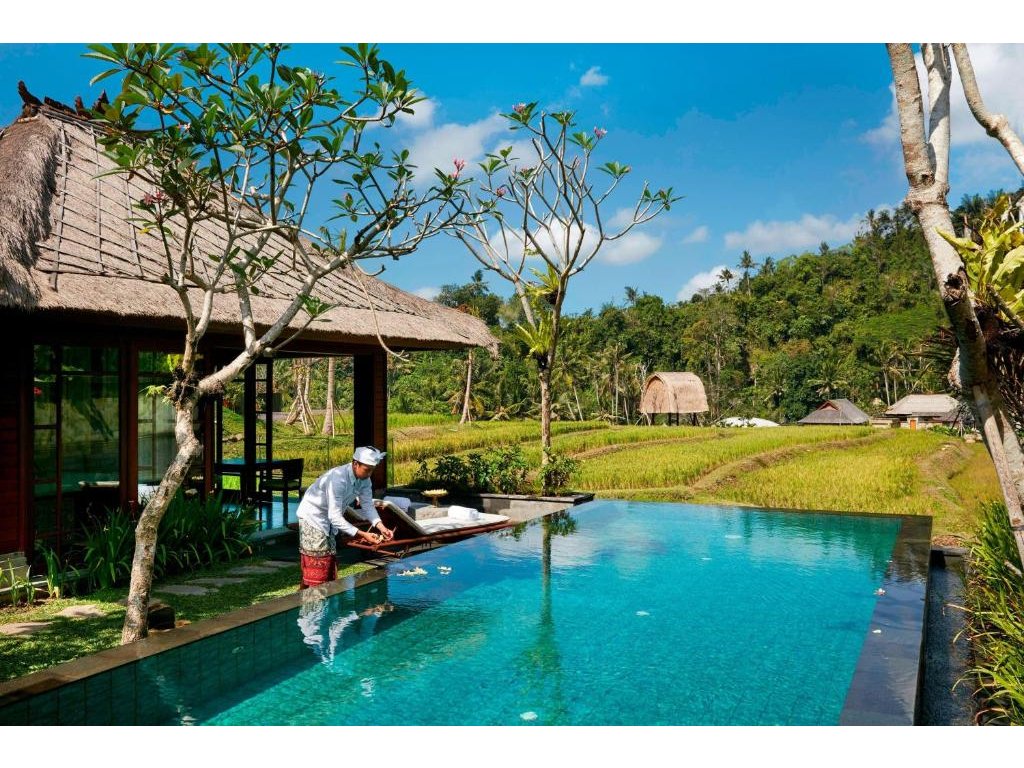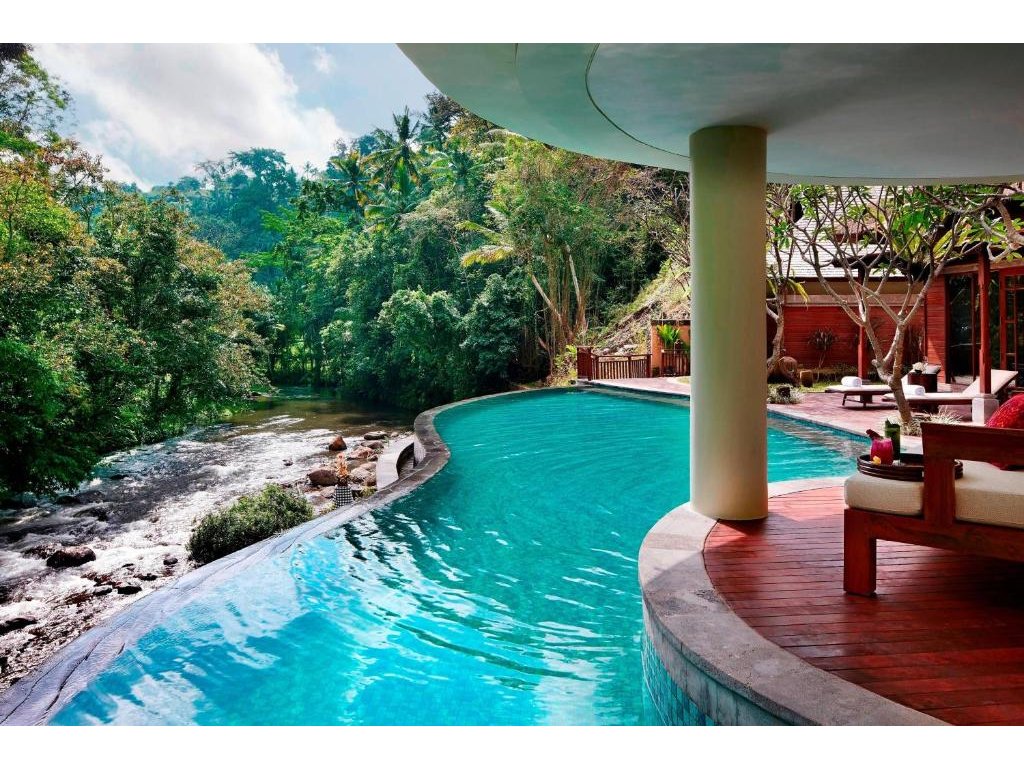 Ultra-luxusní svatyně v Kedewatan / Ubud podél řeky Ayung, obklopená rýžovými terasami a džunglí. 60 suit a vil s privátními venkovními prostory, servis butlerů Patih 24/7 a až obřadná pozornost k detailu. Ideální pro páry a náročné cestovatele hledající absolutní klid, přírodu a špičkovou gastronomii.