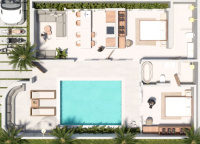cca 220–250 m² | Delší bazén a větší zahrada, 3 ložnice, 3 koupelny, obytná zóna indoor/outdoor. Vhodné pro skupiny přátel.