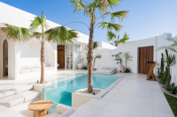 Soukromé bazény, útulné obývací zóny a kuchyňky, terasy do zahrady, denní úklid a možnost in-villa snídaní či privátních večeří. Na vyžádání floating breakfast, květinové dekorace, masáže ve vile, půjčení skútru/řidiče.