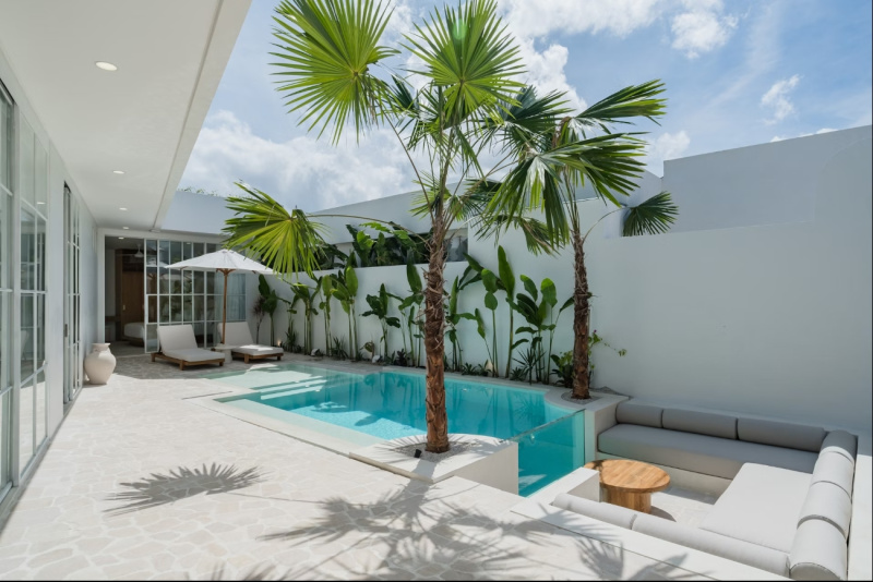 Soukromé bazény, útulné obývací zóny a kuchyňky, terasy do zahrady, denní úklid a možnost in-villa snídaní či privátních večeří. Na vyžádání floating breakfast, květinové dekorace, masáže ve vile, půjčení skútru/řidiče.