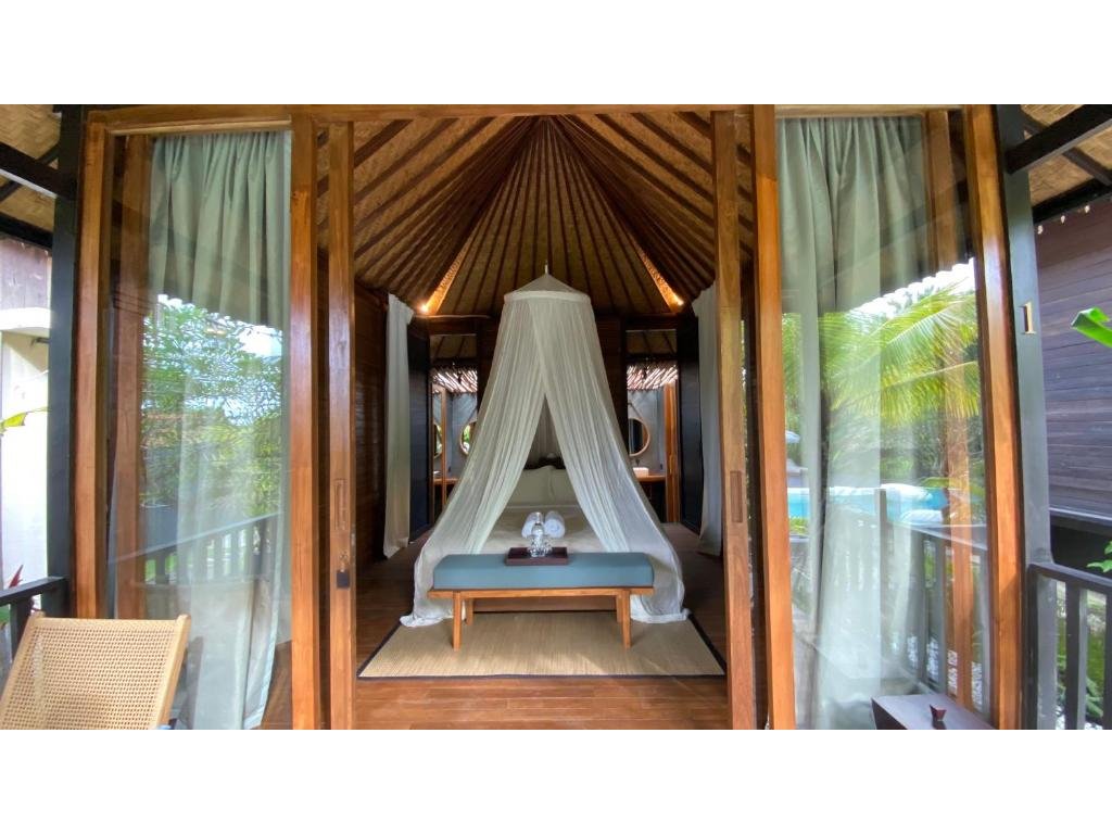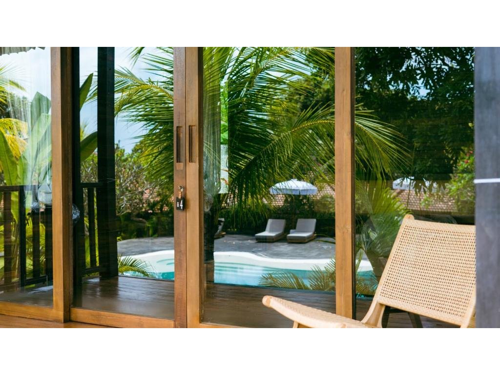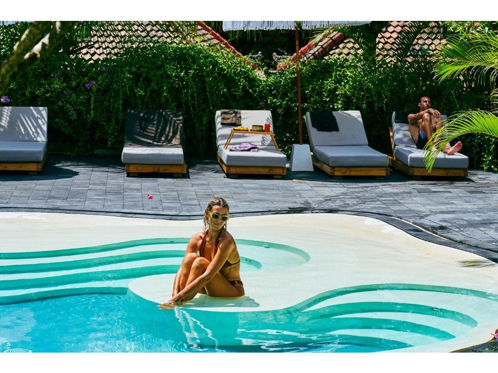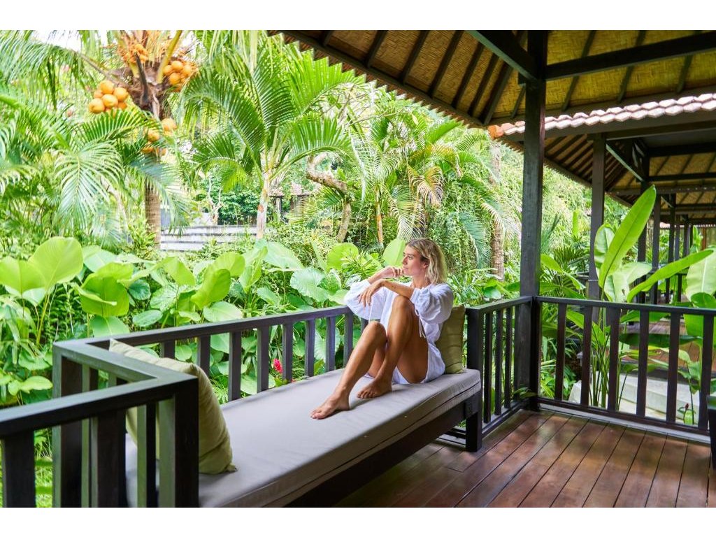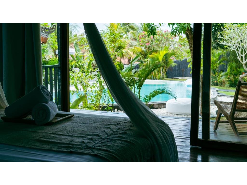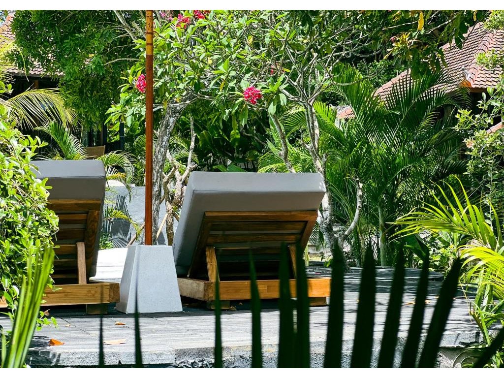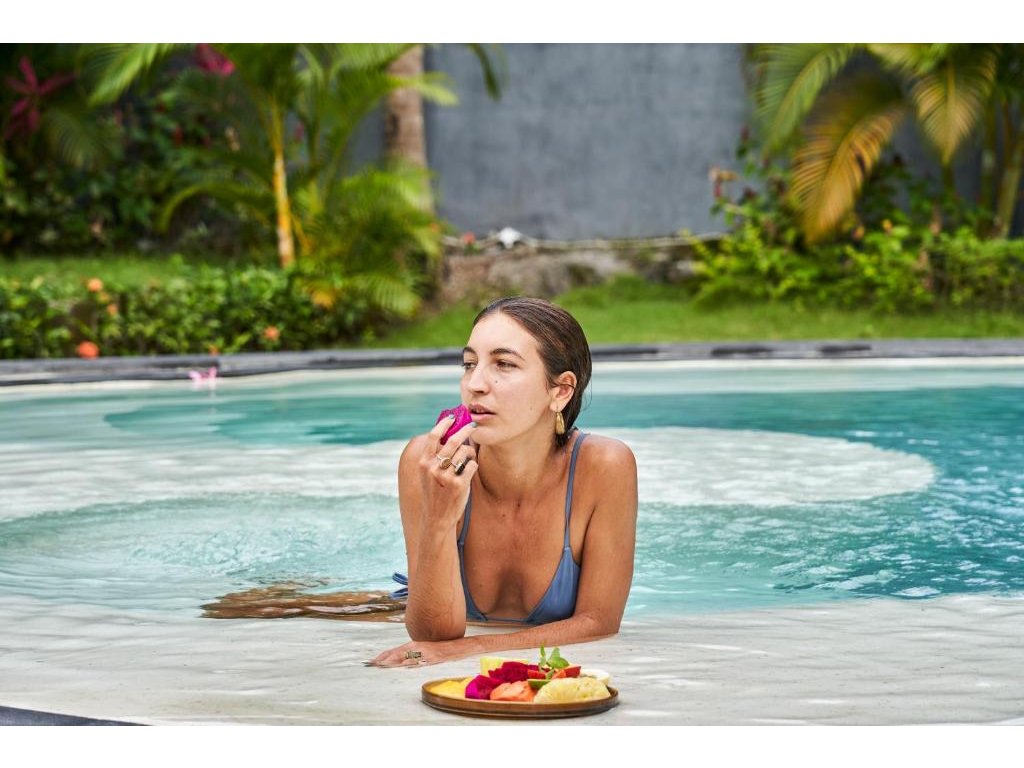 Stylové bungalovy a pokoje v tropické zahradě, hlavní bazén se sluneční terasou, útulná restaurace/bar, možnost jógy a masáží (dle nabídky). Adults-only klid, pohodová komunita hostů, snadný přístup k plážím a kavárnám v Bingin.