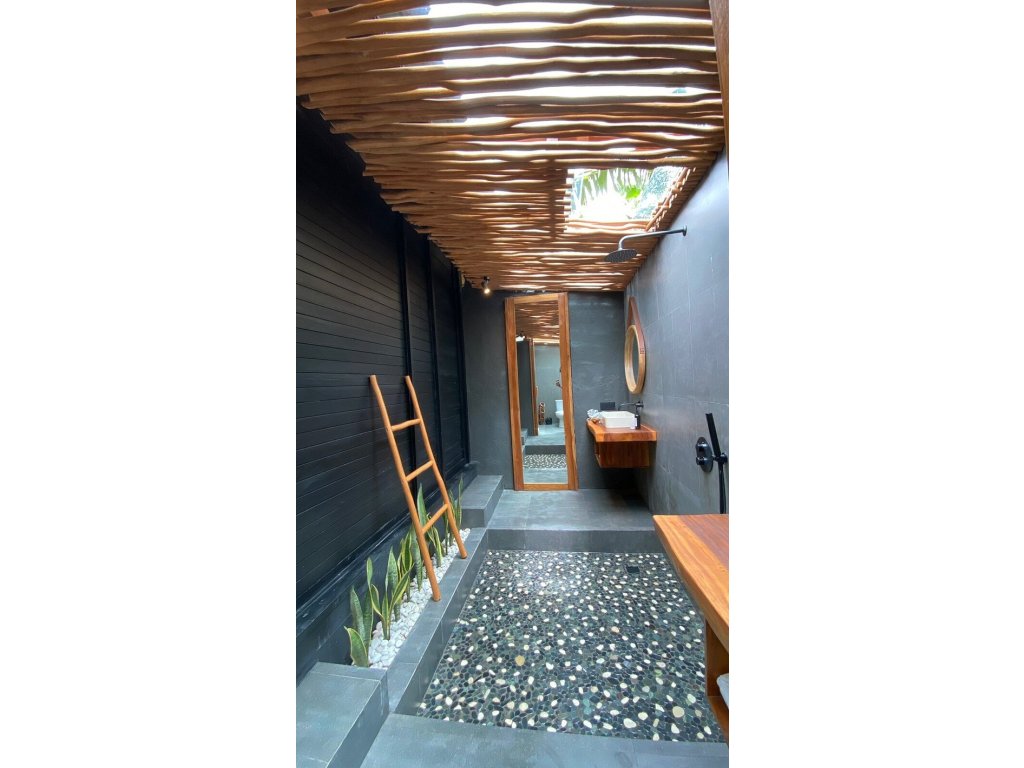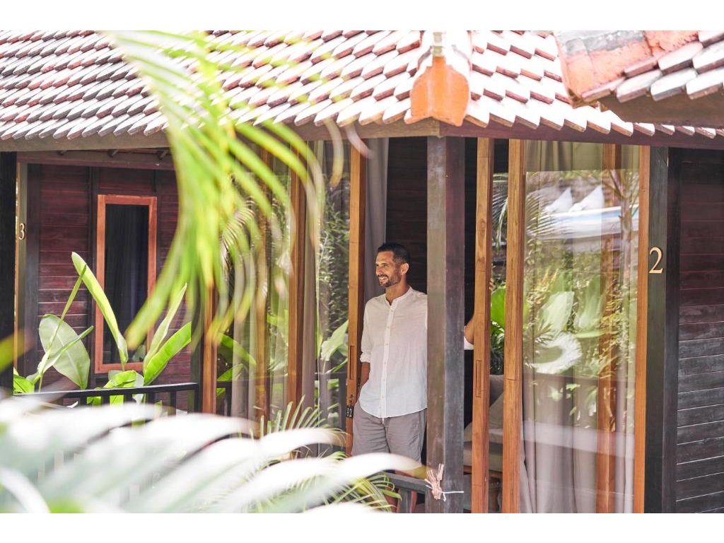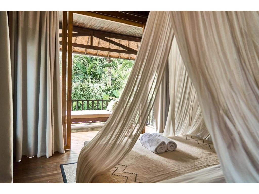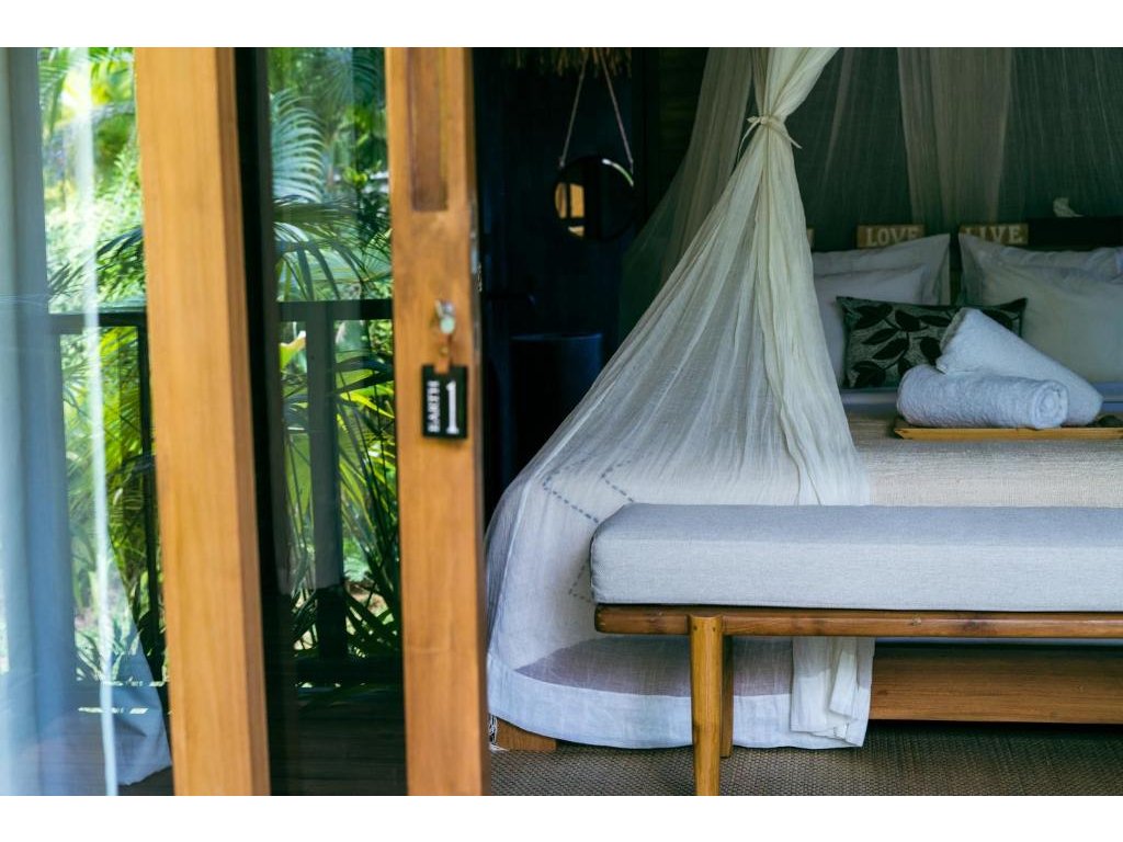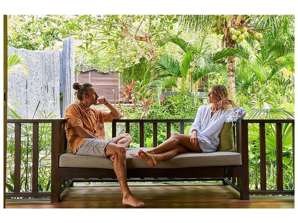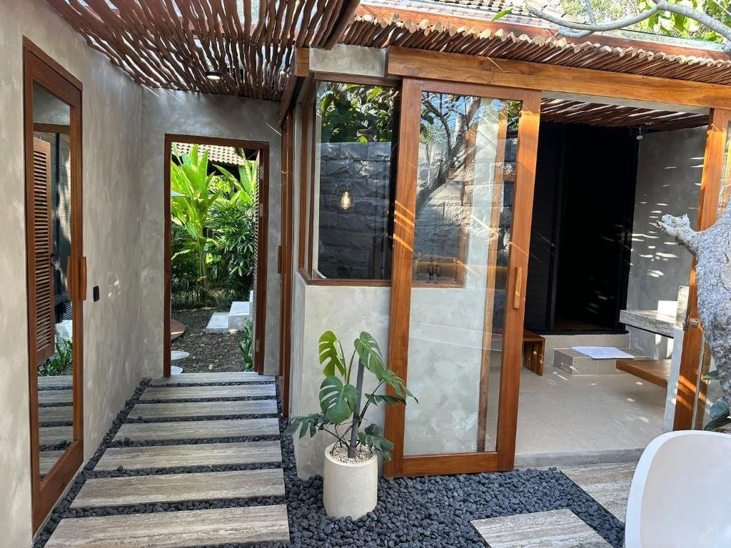 Stylové bungalovy a pokoje v tropické zahradě, hlavní bazén se sluneční terasou, útulná restaurace/bar, možnost jógy a masáží (dle nabídky). Adults-only klid, pohodová komunita hostů, snadný přístup k plážím a kavárnám v Bingin.
