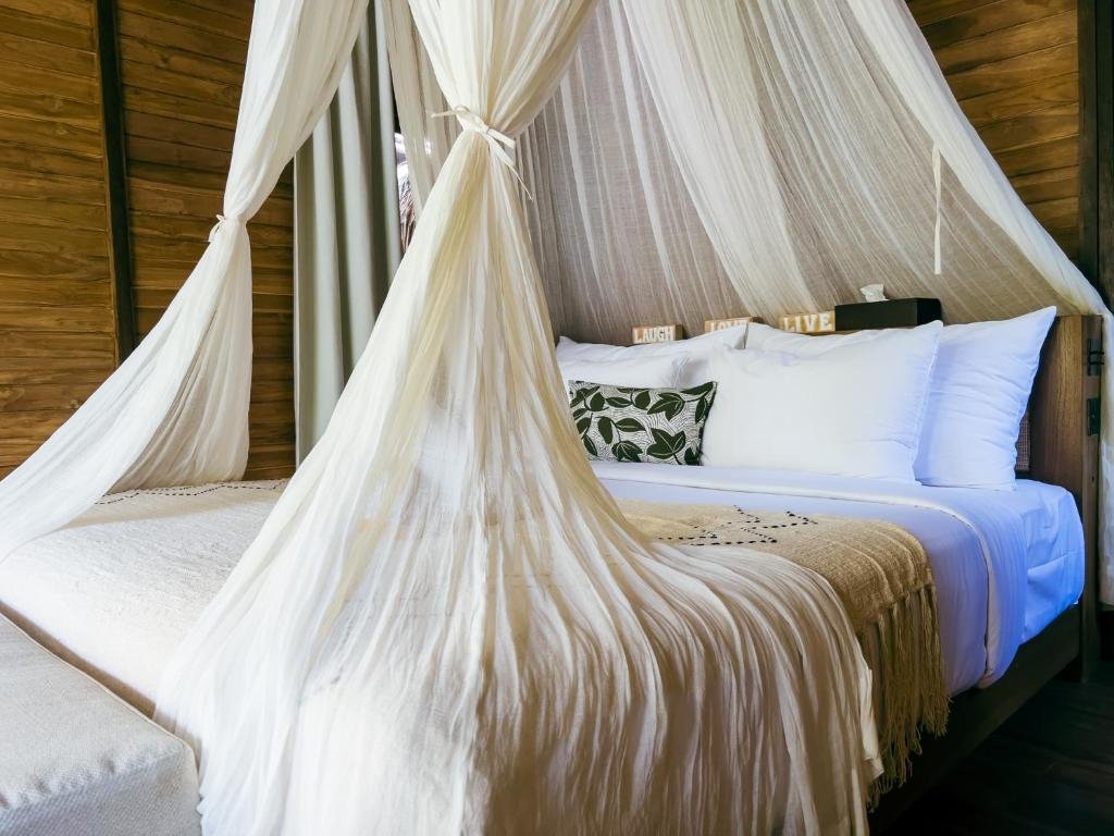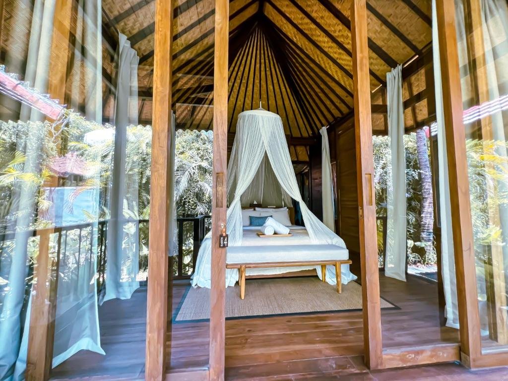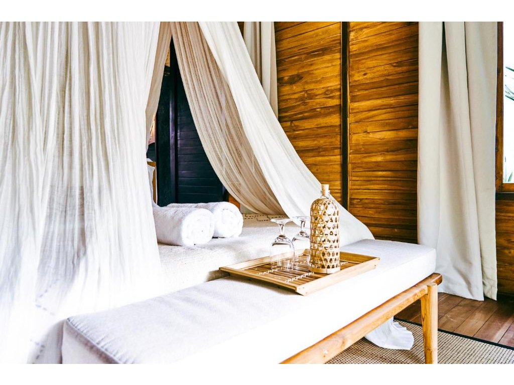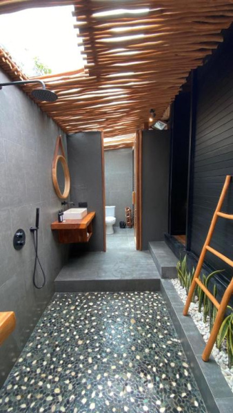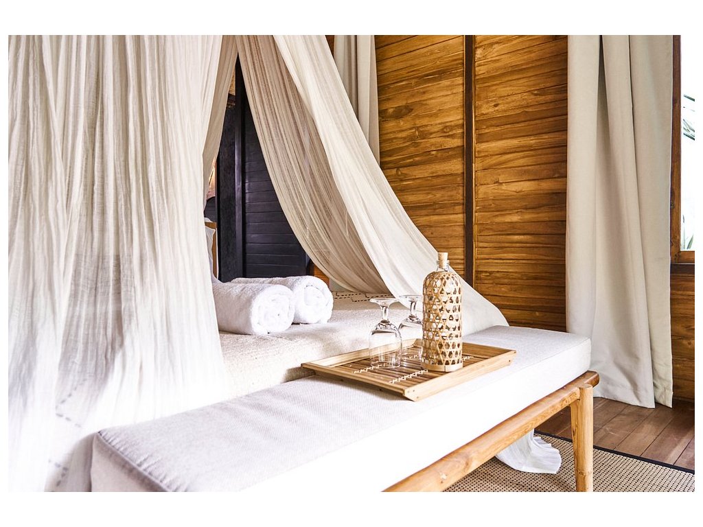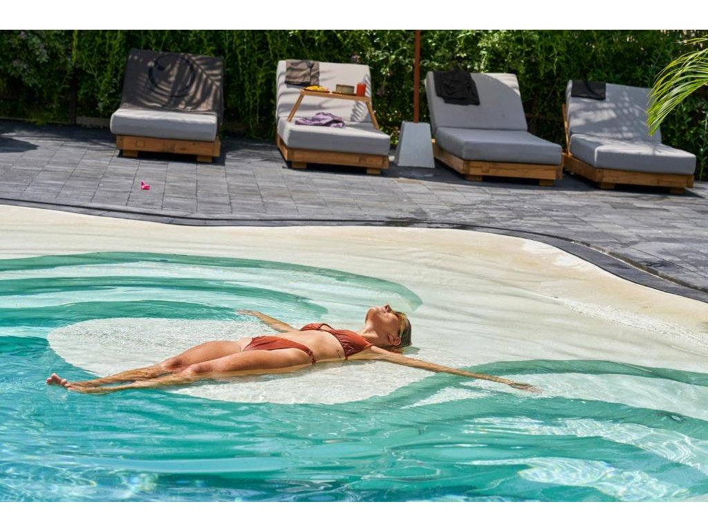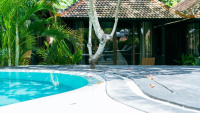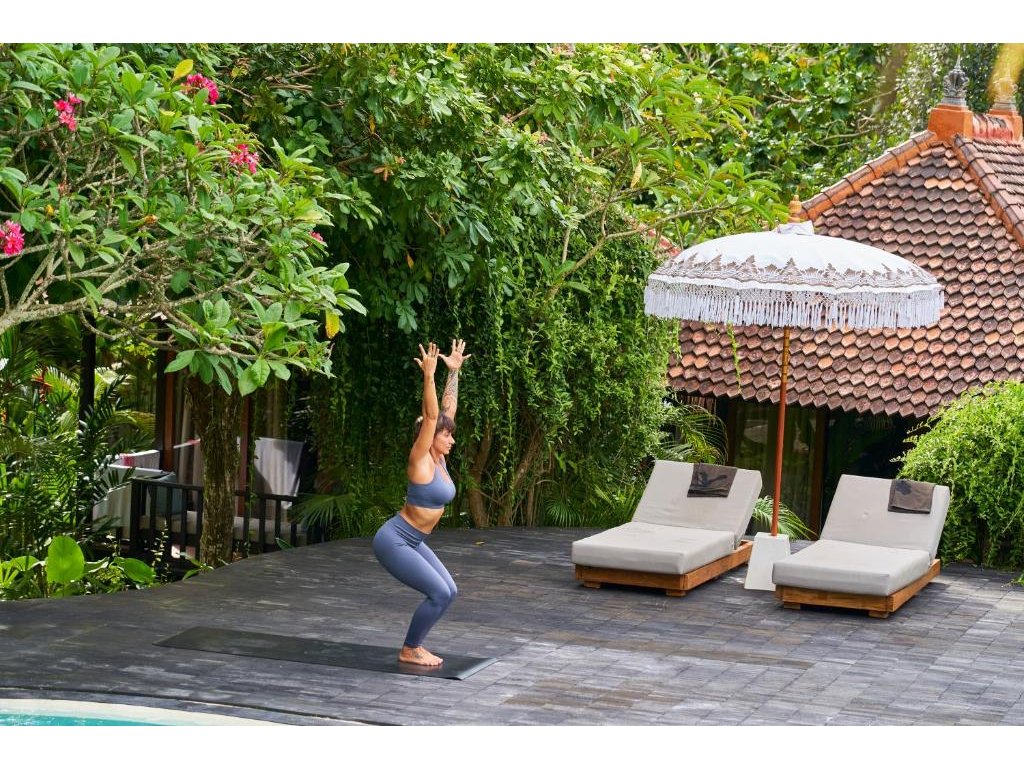 Stylové bungalovy a pokoje v tropické zahradě, hlavní bazén se sluneční terasou, útulná restaurace/bar, možnost jógy a masáží (dle nabídky). Adults-only klid, pohodová komunita hostů, snadný přístup k plážím a kavárnám v Bingin.