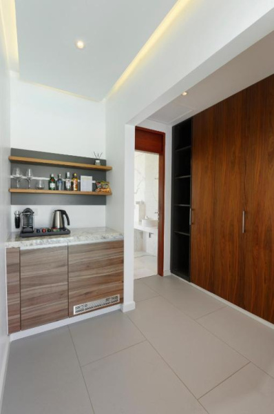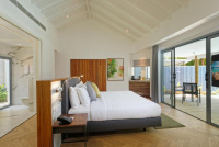 Vila na pláži s privátním bazénem, denní lehátka, velká terasa. V interiéru moderní koupelna (dvojité umyvadlo), indoor & outdoor sprcha v soukromé zahradě.