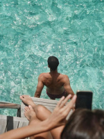 Nadvodní vila s vlastním bazénem, výhledem na oceán a přímým vstupem do laguny. Minimalistický design a úplné soukromí.
