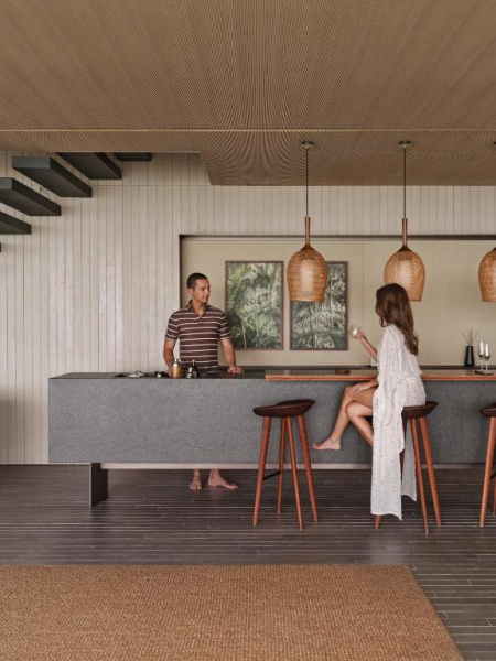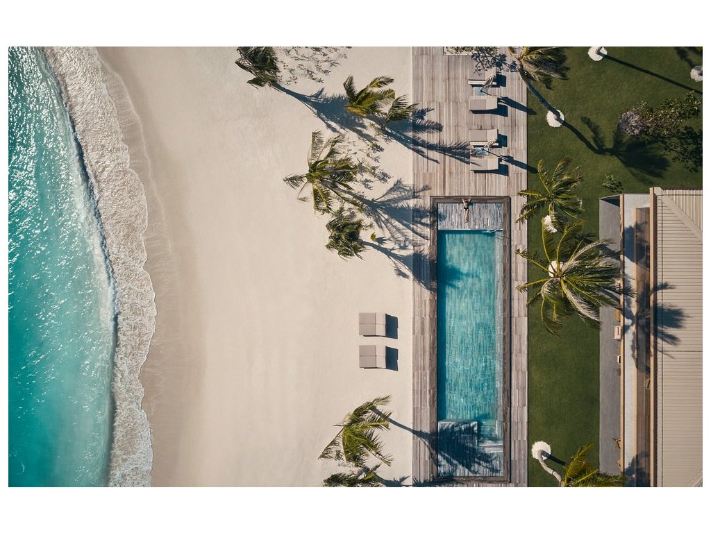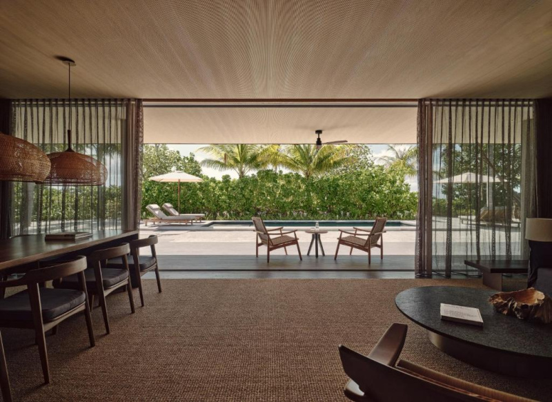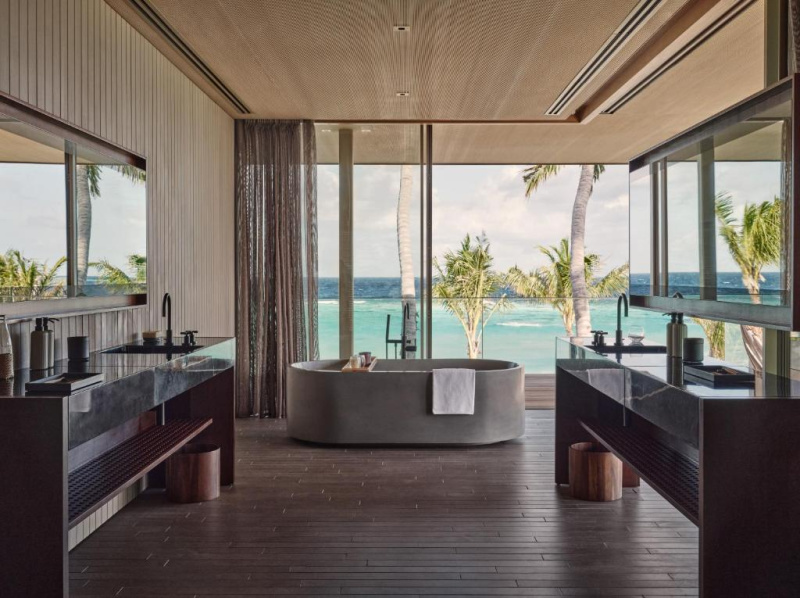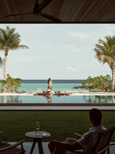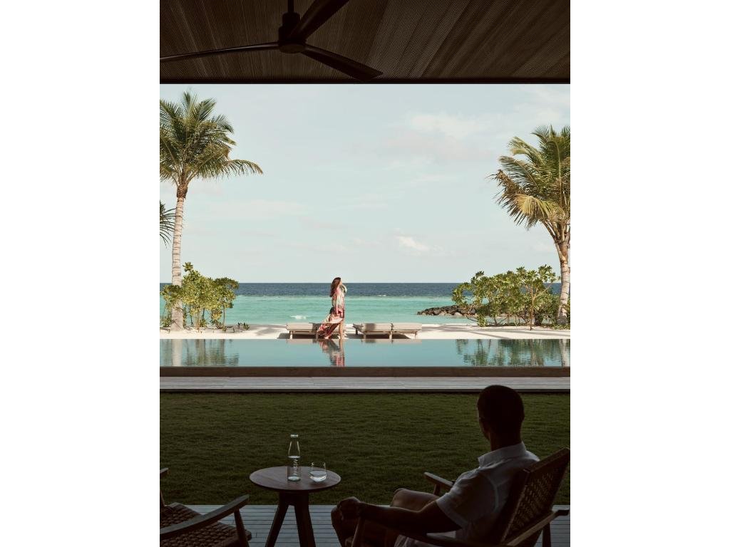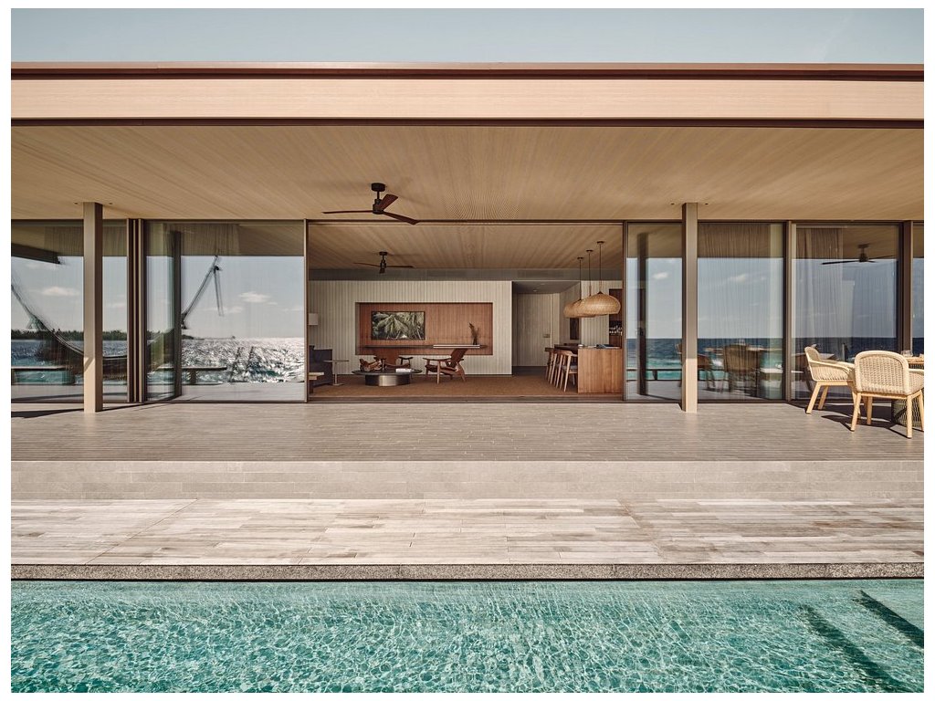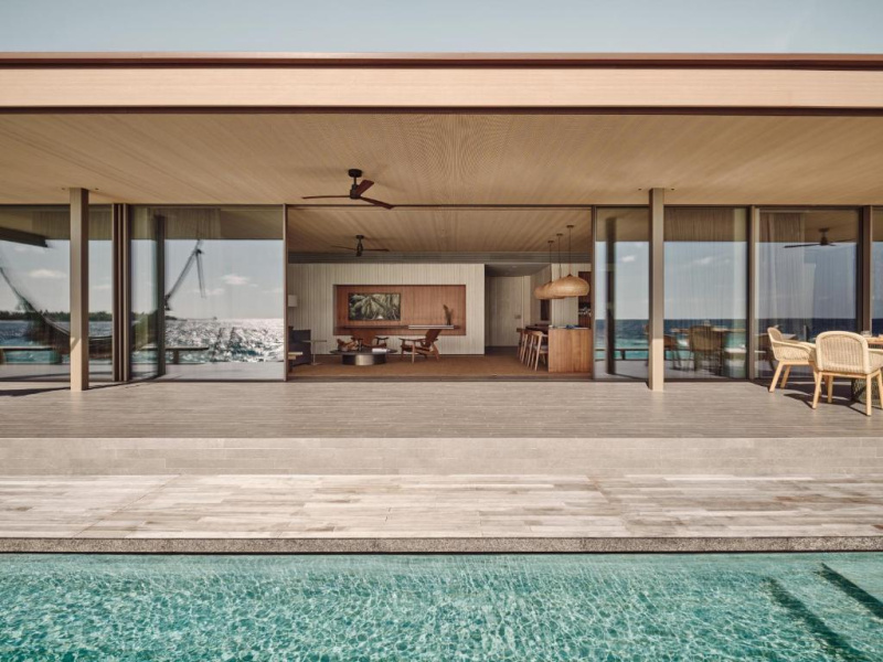 Nadvodní vila s vlastním bazénem, výhledem na oceán a přímým vstupem do laguny. Minimalistický design a úplné soukromí.
