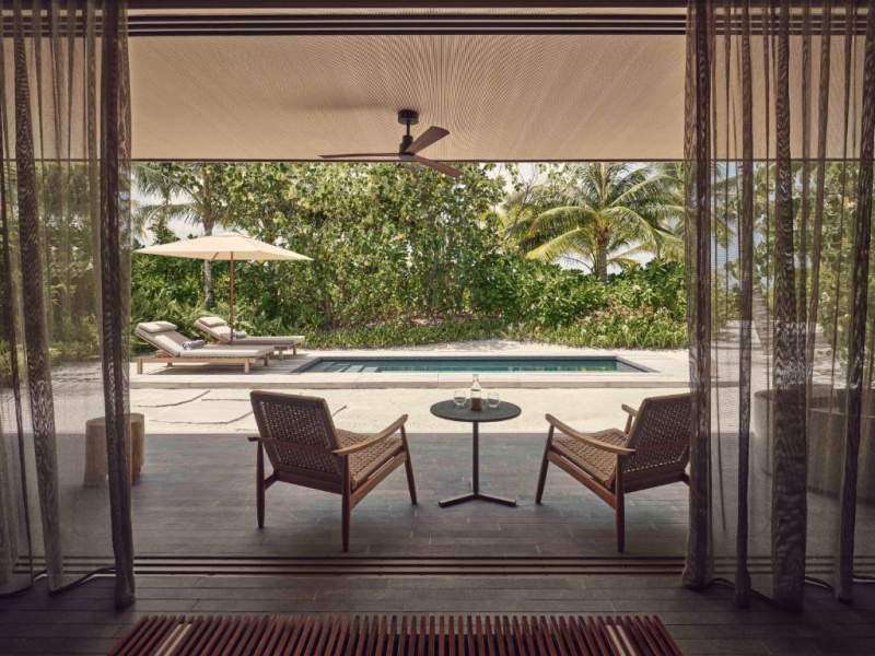 Plážová vila s vlastním bazénem a moderním interiérem v přírodním stylu. Výhled do zahrady a částečně na oceán. Přímý vstup na pláž, prostorné zázemí a vysoké soukromí.