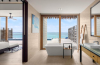 ≈ 220 m² | Nadvodní vila s privátním bazénem, velkou terasou a přímým vstupem do laguny. Ložnice s obývací zónou, koupelna s vanou a dešťovou sprchou, minibar/espresso. Ideální pro páry milující vodu a výhledy.