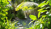 Prostorná tropická rezidence zasazená mezi deštný prales a bílý písek, jen pár kroků od pláže. Nabízí světlé obytné prostory, plně vybavenou spižírnu, soukromý bazén a relaxační houpací síť mezi palmami. Ideální pro větší rodiny či skupiny přátel hledající harmonii s přírodou, komfort a možnost volně objevovat ostrov na kolech nebo tříkolkách.