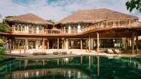 Luxusní tříložnicová rezidence s výhledem na oceán a tradiční doškovou střechou. Nabízí rozsáhlé vnitřní i venkovní prostory, kuchyň, jídelní kout, zapuštěné venkovní posezení, vinný sklípek, posilovnu, TV salonek a hernu. Prosluněné terasy a dřevěné chodníky navozují tropickou atmosféru, zatímco obrovský soukromý bazén zajišťuje dokonalé osvěžení i relaxaci.