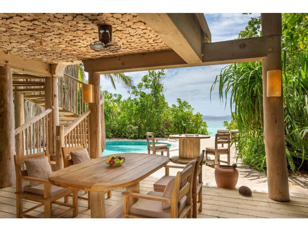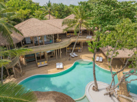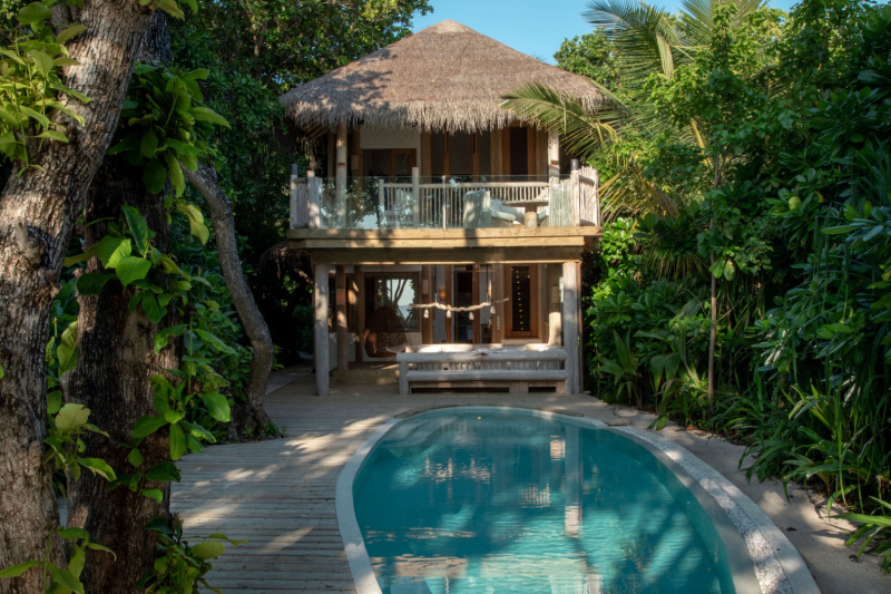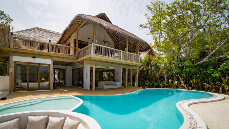 Prostorná dvoupodlažní vila v maledivském stylu, ukrytá v tropické zeleni jen pár kroků od pláže. Nabízí otevřenou koupelnu pod širým nebem, kuchyň, jídelní prostor, horní terasu, soukromý slaný bazén, houpačku ve stínu a nadrozměrná denní lůžka. Ideální pro pomalé tempo a autentický "barefoot luxury" zážitek.