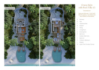 Luxusní dvoupodlažní vila se dvěma ložnicemi, privátním bazénem a dvěma venkovními koupelnami v tropické zahradě. Nabízí také horní terasu, parní místnost, vířivku, vinný chladič, posilovnu a různá posezení uvnitř i venku. Přímý vstup na pláž a vlastní kola pro objevování ostrova. Některé varianty mají samostatné bungalovy a výhled na západ slunce.