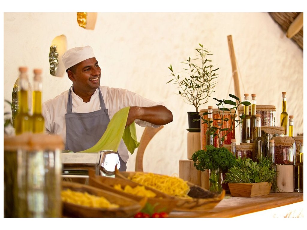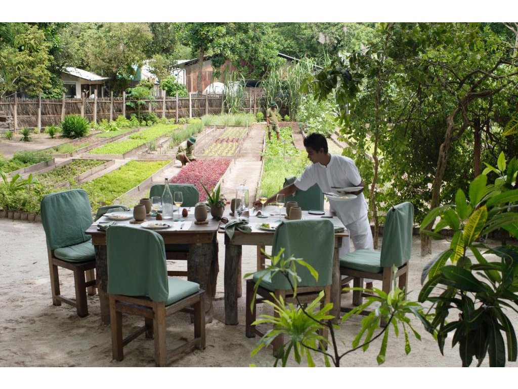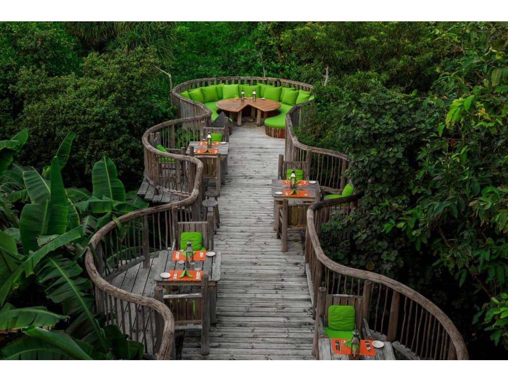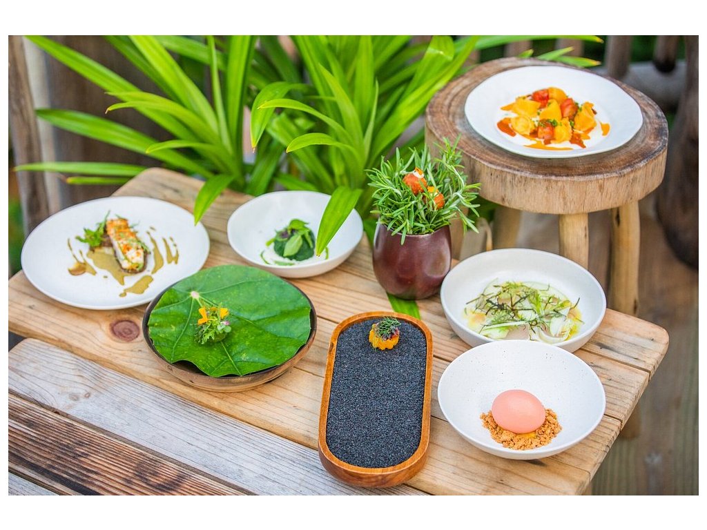 Více než 8 restaurací a barů, včetně Treepod dining, observatoře, chocolate room, cheese room, soba bar, fresh in the garden a další. Možnost večeře na pláži, na střeše i na soukromém ostrově. Špičková kvalita a biodynamické suroviny.