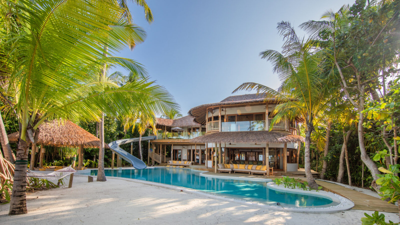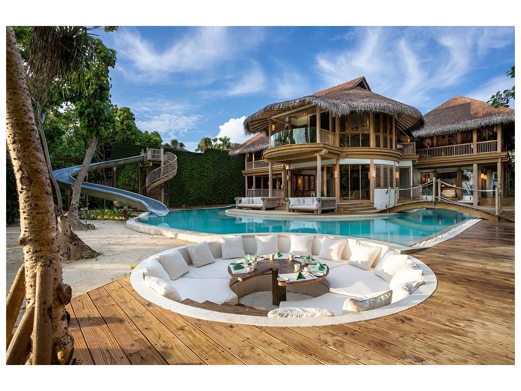 Největší vila v resortu – plážový palác pro náročné hosty. Nabízí devět ložnic, dětský pokoj, skluzavku do lagunového bazénu, soukromé wellness se saunou, párou, posilovnou a masážní místností. Styl džungle s palmovými střechami, přírodními prvky a rozlehlou palubou uprostřed obrovského bazénu. Ideální pro velké skupiny nebo vícegenerační dovolenou s maximálním komfortem a soukromím.