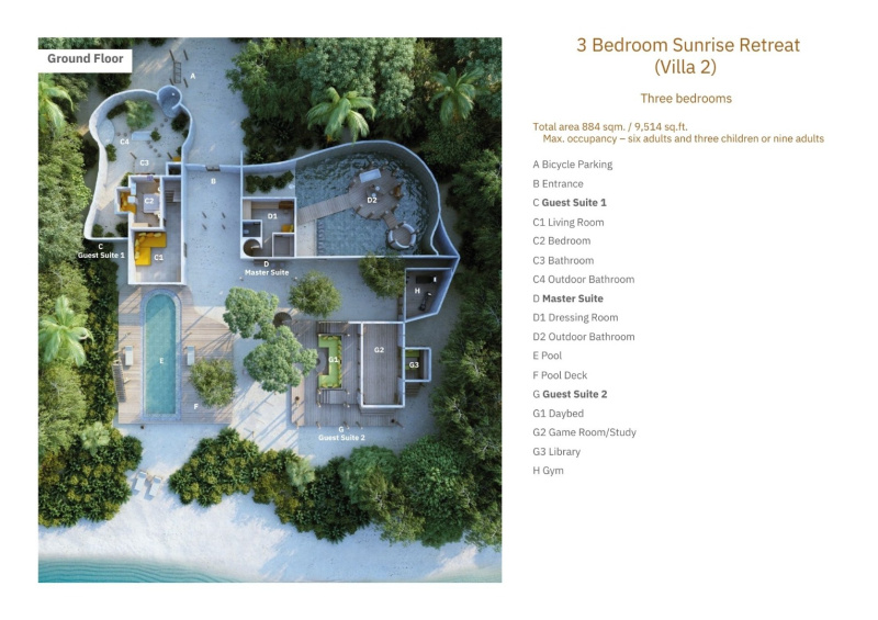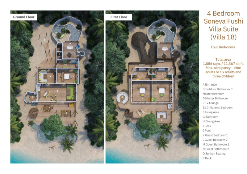 Hravá a luxusní dvoupodlažní plážová rezidence s ložnicemi v obou patrech, několika relaxačními zónami, privátním bazénem a přímým vstupem na pláž. Dvě venkovní zahradní koupelny pod širým nebem, osobní kola pro objevování ostrova a prostorné terasy ideální pro odpočinek i stolování. Ideální pro rodiny nebo páry, které hledají kombinaci zábavy, komfortu a soukromí v tropickém ráji.
