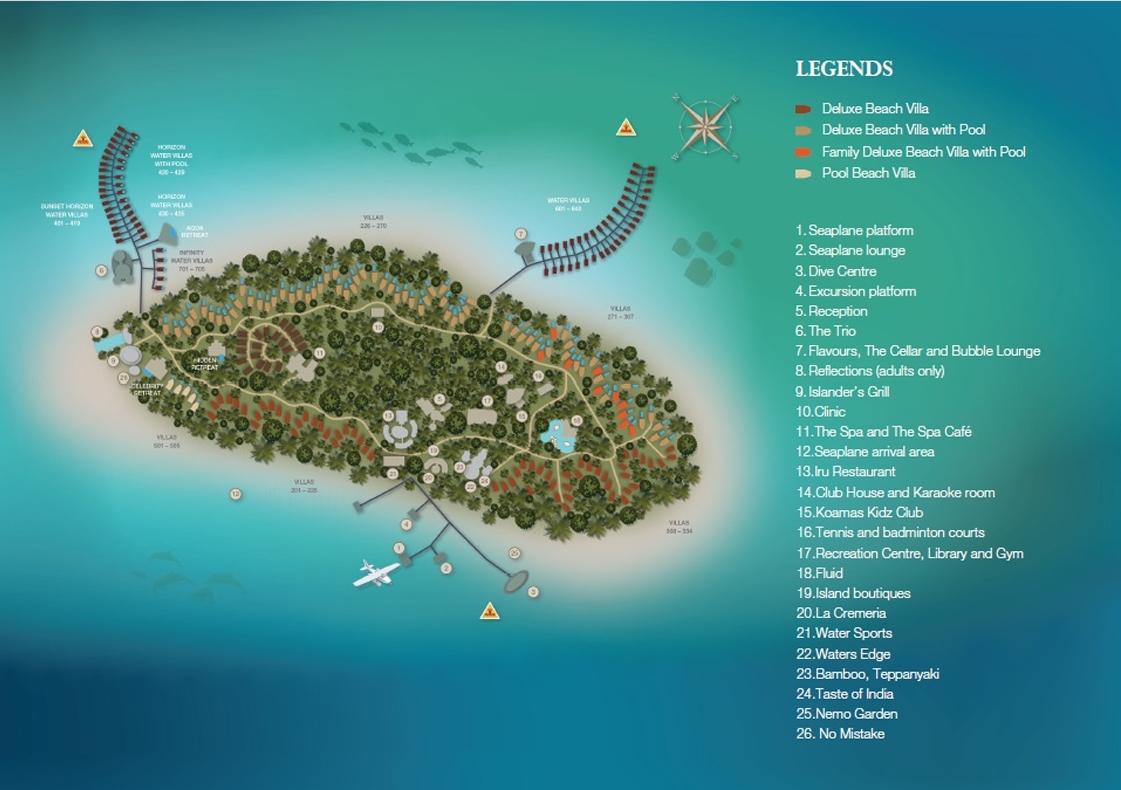 Rezort nabízí za nás jedny z nejhezčích vil se soukromými bazény v poměru cena/kvalita i vzhledem k jejich velikosti a soukromí. Ostrov je velký a má nádherné pláže s dostatkem prostoru a soukromí. Je zde nádherná zeleň a výhodou jsou i aktivity pro děti. Na druhou stranu je zde slabší šnorchlování a domácí reef. Resort je dostupný pouze hydroplánem, ale často bývá v balíčcích doprava zdarma. Za nás jeden z nejlepších resortů na Maledivách v poměru cena/luxus.