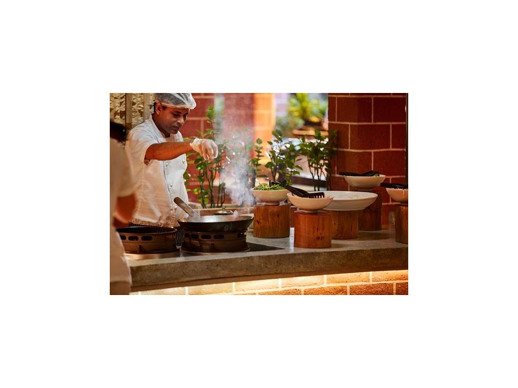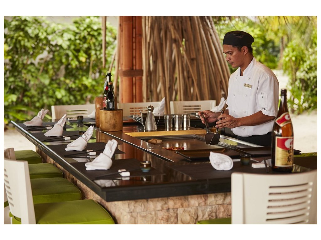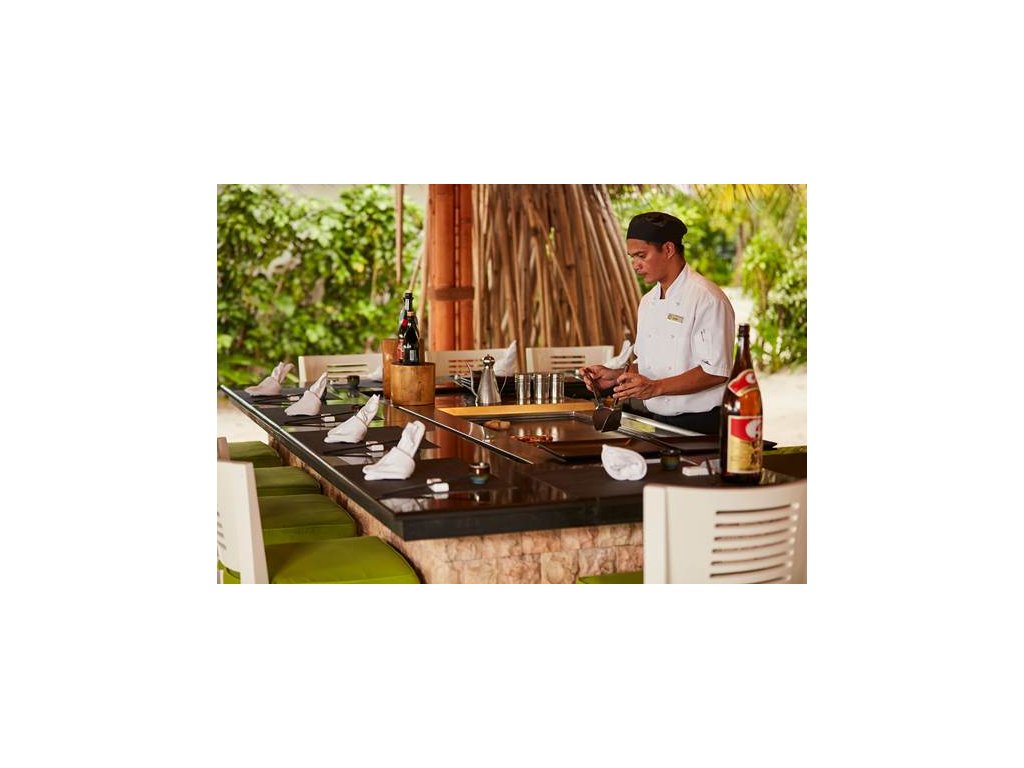 Resort nabízí 15 restaurací a barů s rozmanitou nabídkou kuchyní – maledivská, italská, japonská, thajská, indická, středomořská a mezinárodní. Stravovací možnosti zahrnují snídani, polopenzi, plnou penzi a all inclusive balíčky. Speciální večeře, například při svátcích, jsou nabízeny za příplatek.