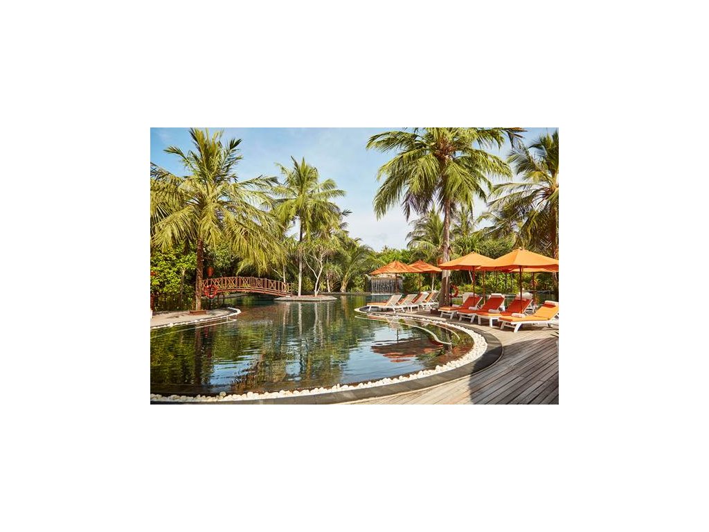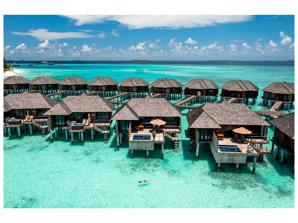 Luxusní pětihvězdičkový resort v atolu Noonu, nádherné a prostorné plážové a nadvodní vily, krásné pláže a zeleň, ale horší house reef. Ideální jak pro páry, tak i pro rodiny s dětmi.
