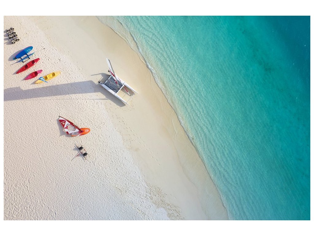 - Pláže: Široké, bílé písčité pláže obklopující celý ostrov, s dostatkem prostoru a soukromí