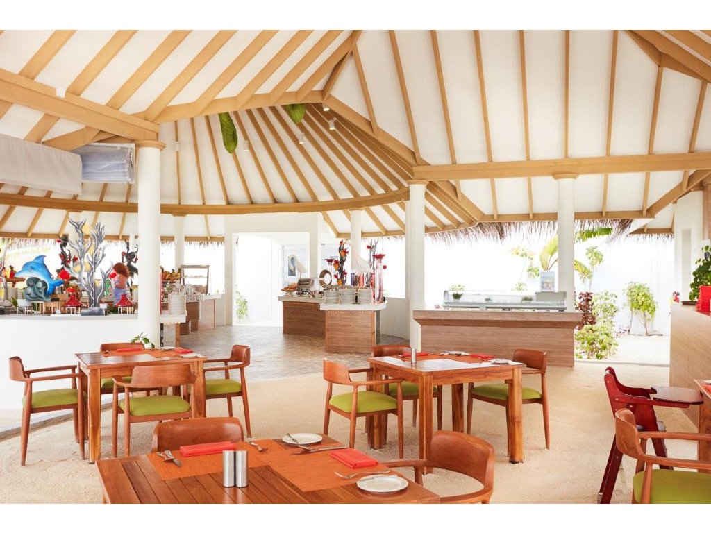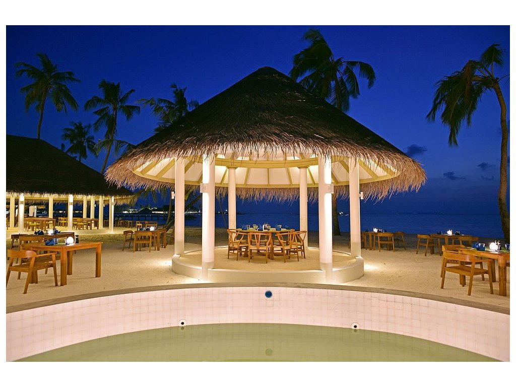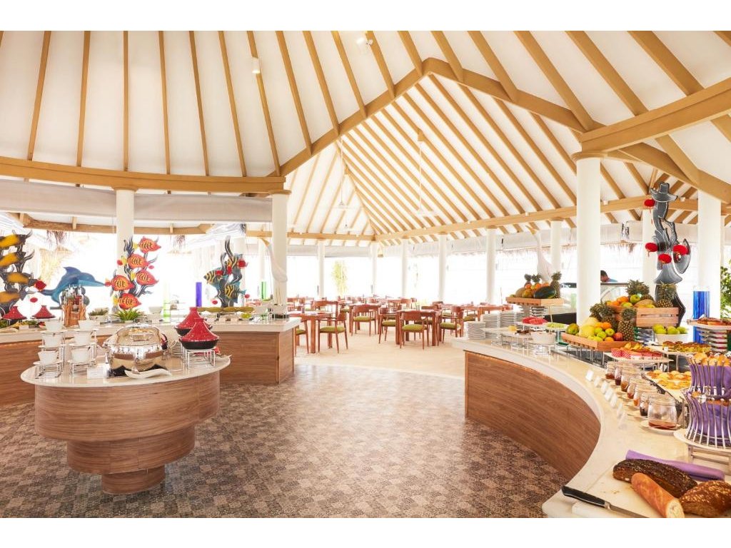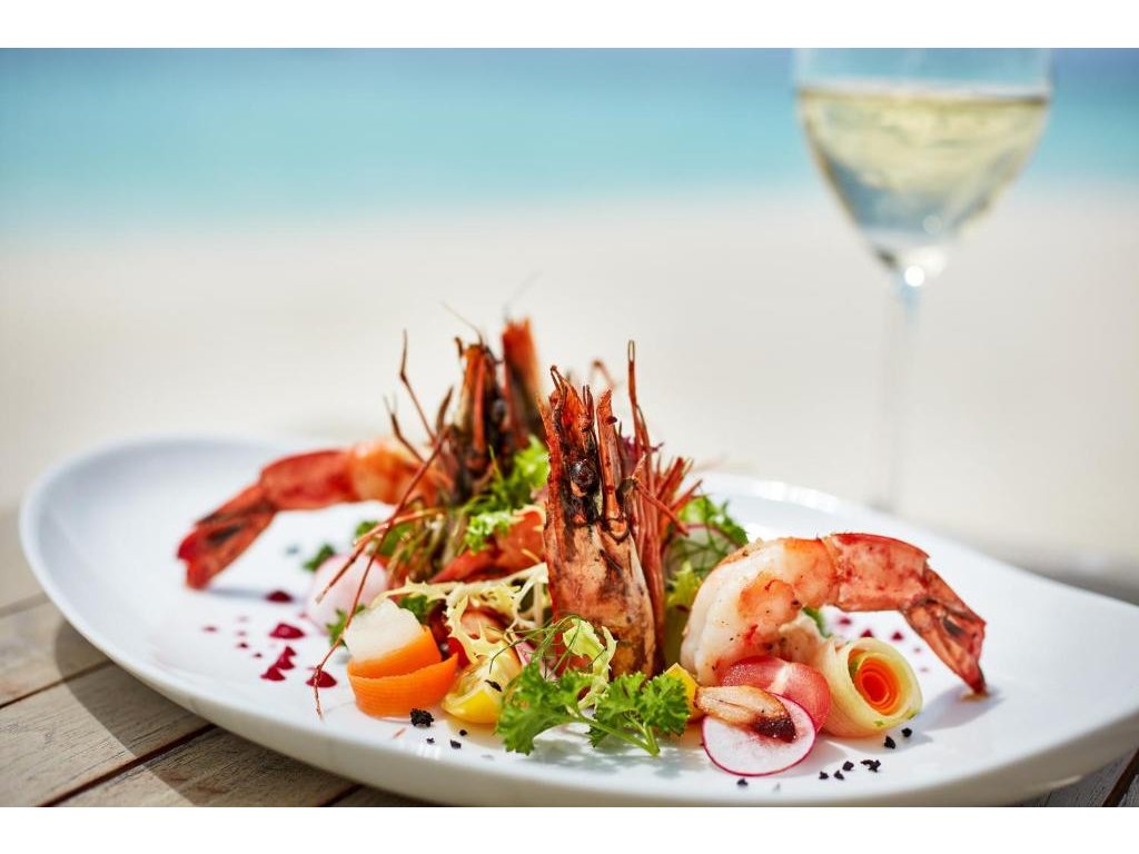 3 restaurace a 2 bary: mezinárodní bufet, à la carte speciality, mořské plody, asijská kuchyně, snack bary a plážový servis. V ceně jsou zahrnuty i privátní večeře na pláži (omezený počet dle délky pobytu) a tematické večery.