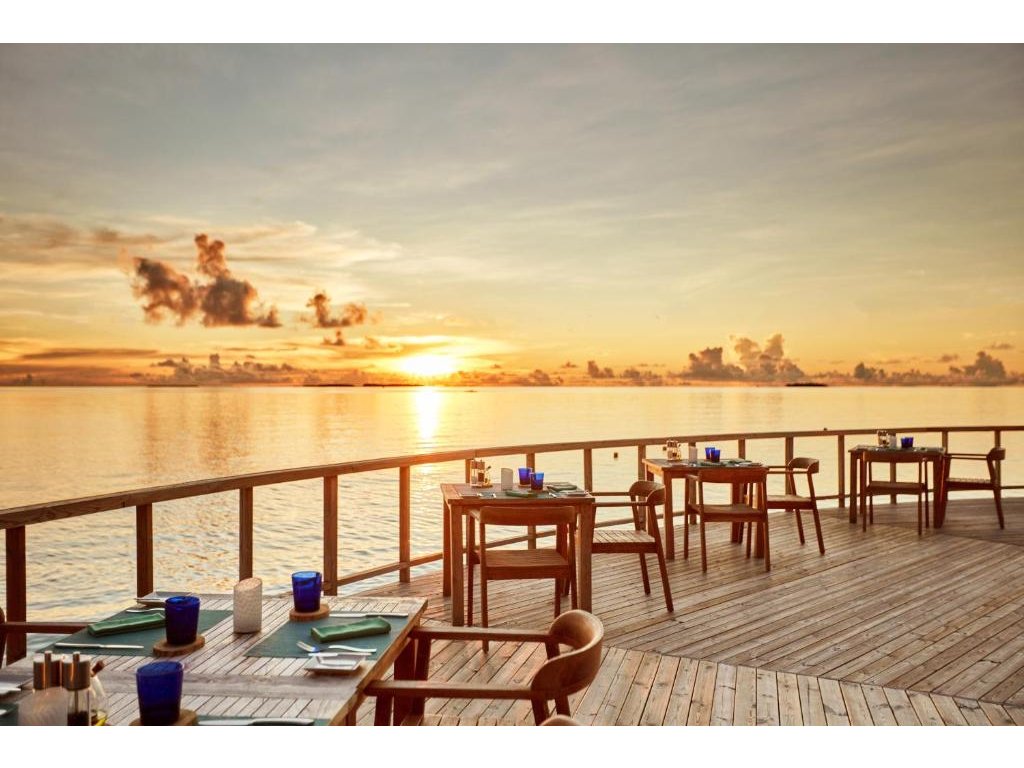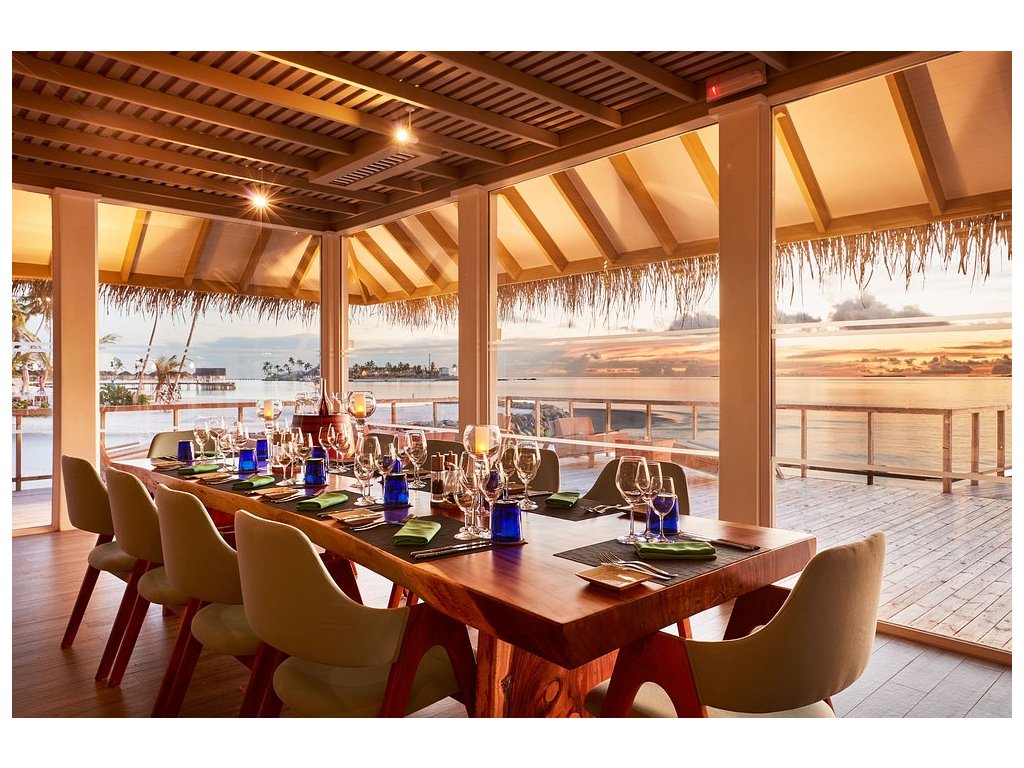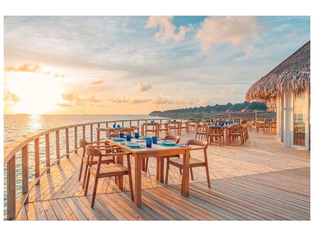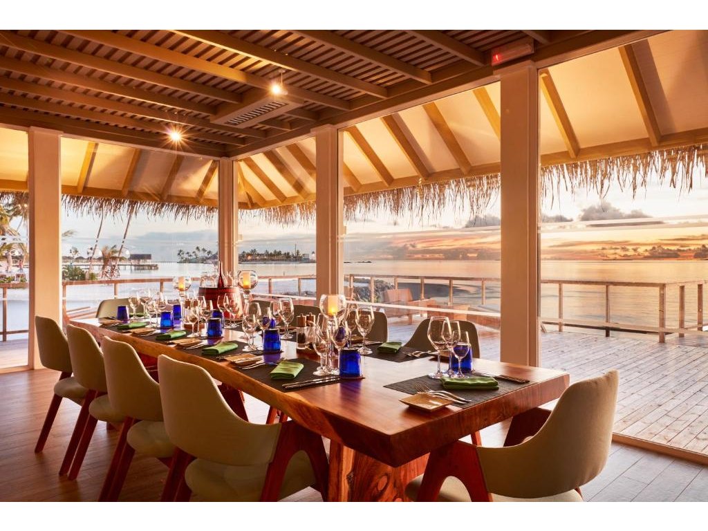 3 restaurace a 2 bary: mezinárodní bufet, à la carte speciality, mořské plody, asijská kuchyně, snack bary a plážový servis. V ceně jsou zahrnuty i privátní večeře na pláži (omezený počet dle délky pobytu) a tematické večery.
