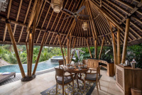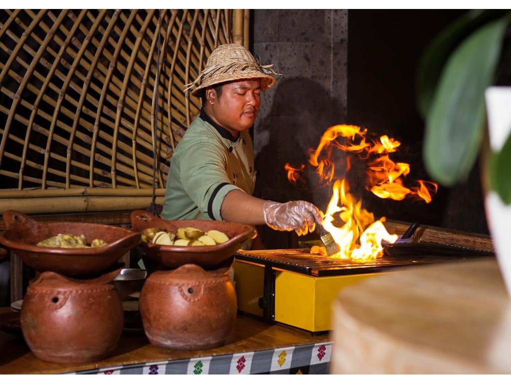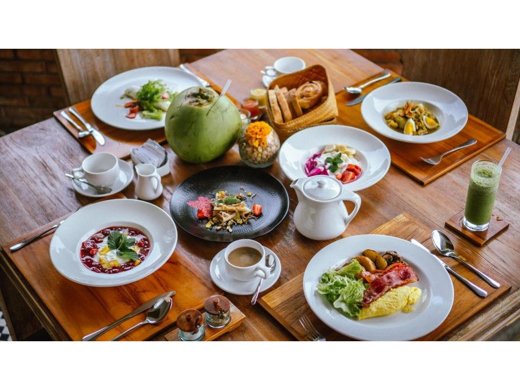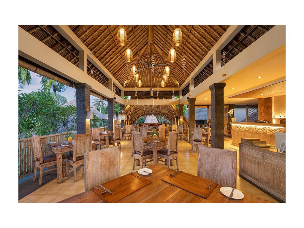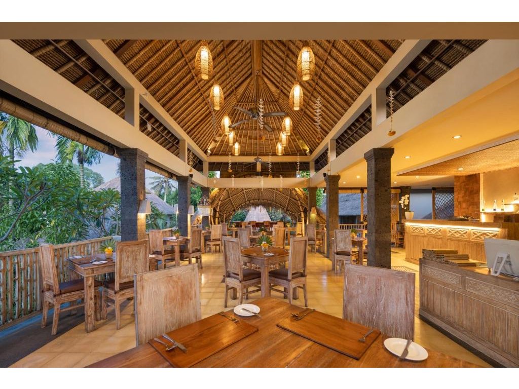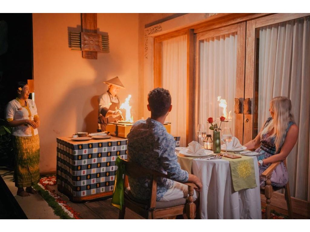 Signaturní Perantenan Restaurant (snídaně/oběd/večeře), mezinárodní i balijské chutě s důrazem na lokální suroviny. Možnost servírovat snídani do vily/pokoje.