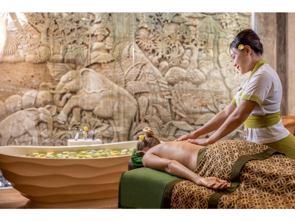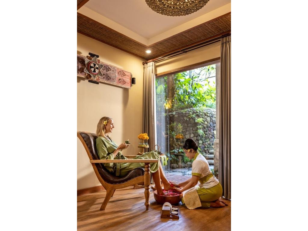 Klasické pokoje a suity s balkony/terasami, vybrané jednotky ve vilách mají privátní bazén. Klidné spa pavilony, hlavní bazén, každodenní odpolední čaj a možnosti zážitků (např. floating breakfast, romantické večeře).