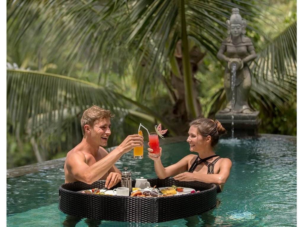 The Kayon Jungle Resort je romantická adults-only volba s ikonickými bazény a špičkovým wellness. Nenabízí pláž, zato přináší džungle scenérie, soukromí vil a kulinářské zážitky – ideální alternativа k plážovým resortům pro ty, kdo hledají klid a výjimečnou atmosféru Ubudu.