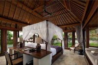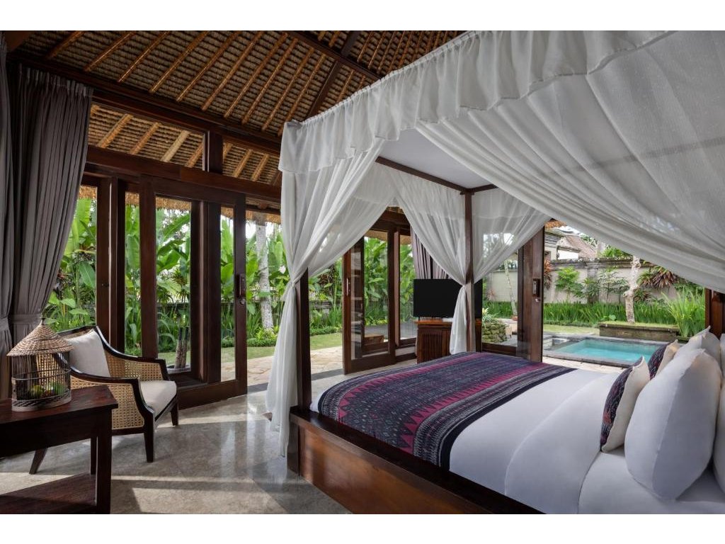 Etablovaný garden-villa resort s mimořádně prostornými vilami (cca 280–350 m²), velkými soukromými bazény a zeleni jako v botanické zahradě. Oceníte klidnou, intimní atmosféru, blízkost Monkey Forest a snadný přístup do centra Ubudu. Služby jsou pozorné, ale nerušivé; důraz na relax, lokální kulturu a pohodlí. Skvělé pro romantiku i delší odpočinek mimo ruch hlavních ulic.